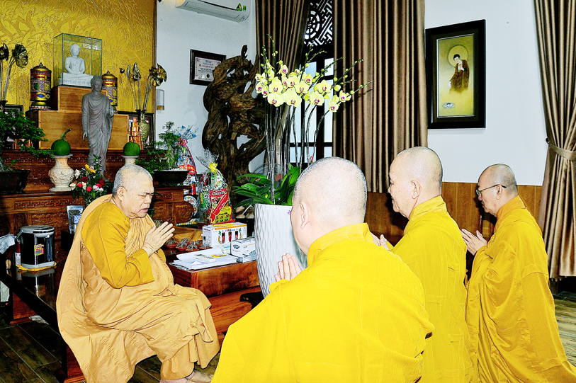 Với người đệ tử Phật, ngày lễ Tự tứ cũng chính là ngày Xuân đạo. Vì vậy, hằng năm, sau ngày lễ Tự tứ, BTS GHPGVN tỉnh Long An đến đảnh lễ khánh tuế hạ lạp chư tôn Giáo phẩm HĐCM, HĐTS Trung ương GHPGVN. Với ý nghĩa đó, sáng ngày 31/8/2020 (nhằm ngày 13/7 năm Canh Tý) chư tôn đức Thường Ban Trị sự GHPGVN do HT.Thích Minh Thiện – Ủy viên HĐTS, Phó Trưởng Ban Hoằng pháp TW, Trưởng Ban Trị sự Phật giáo tỉnh Long An làm trưởng đoàn đã đến đãnh lễ, khánh tuế chư tôn Giáo phẩm HĐCM, HĐTS Trung ương GHPGVN.