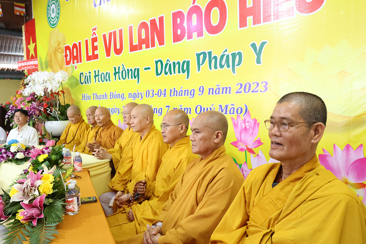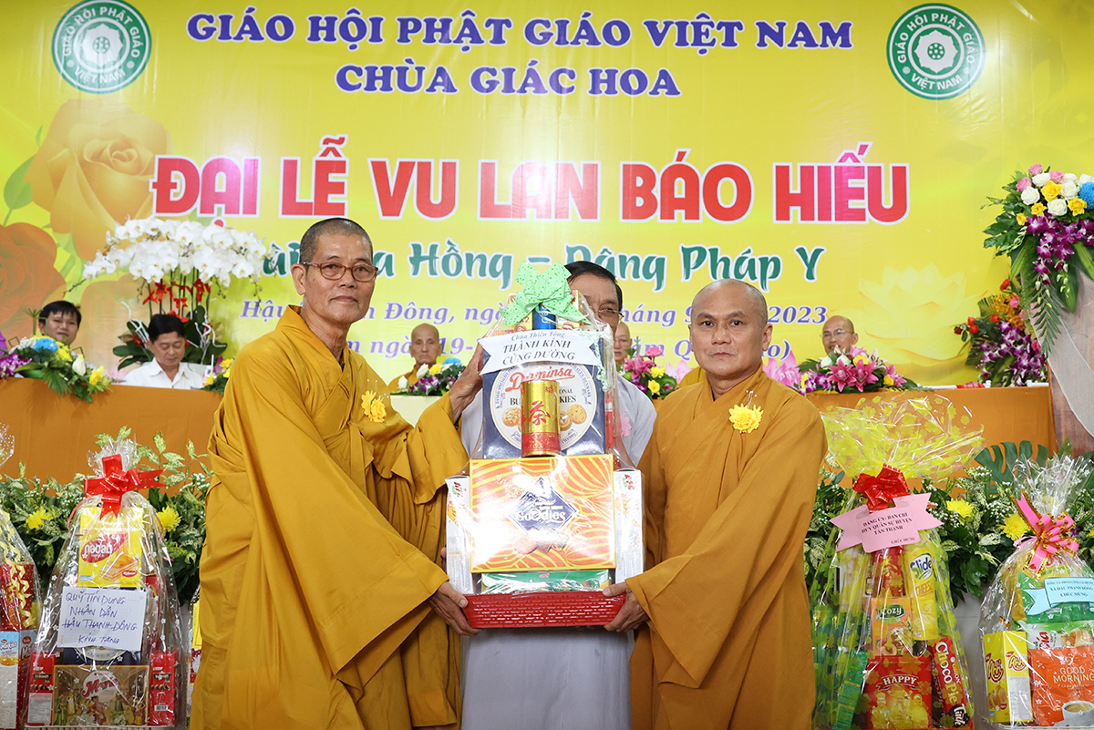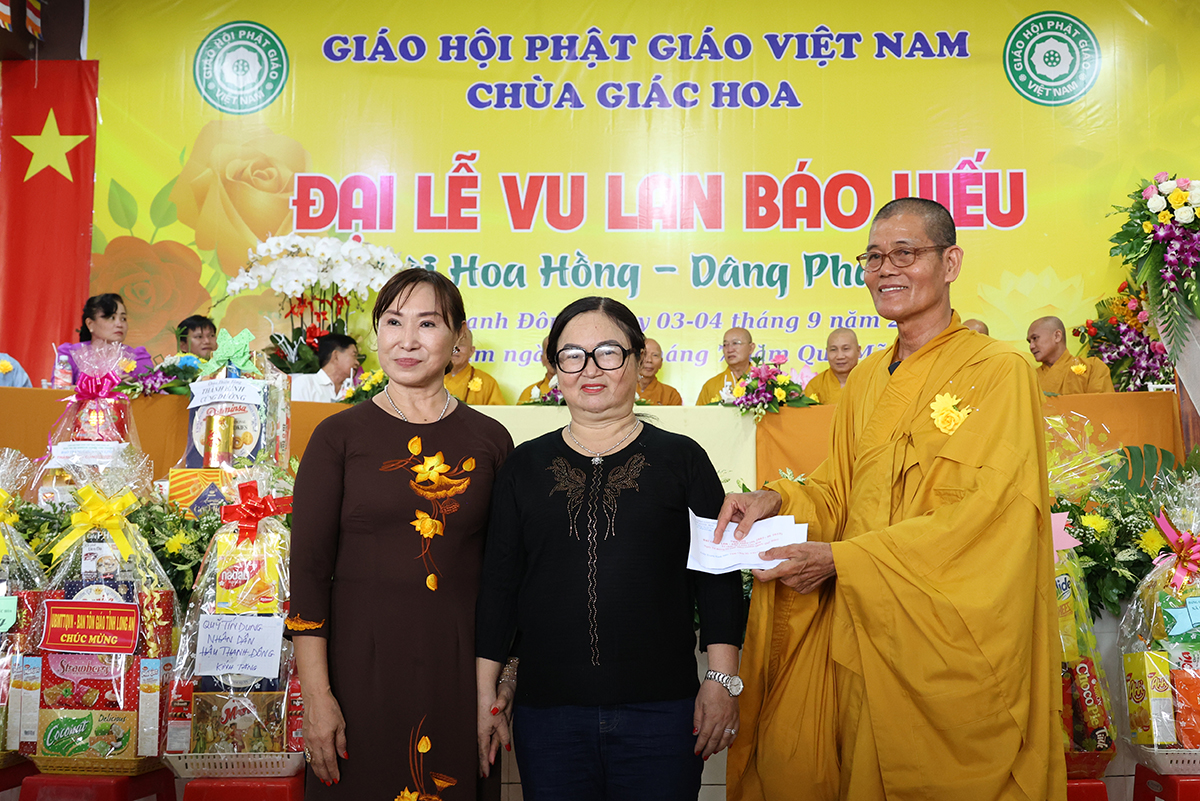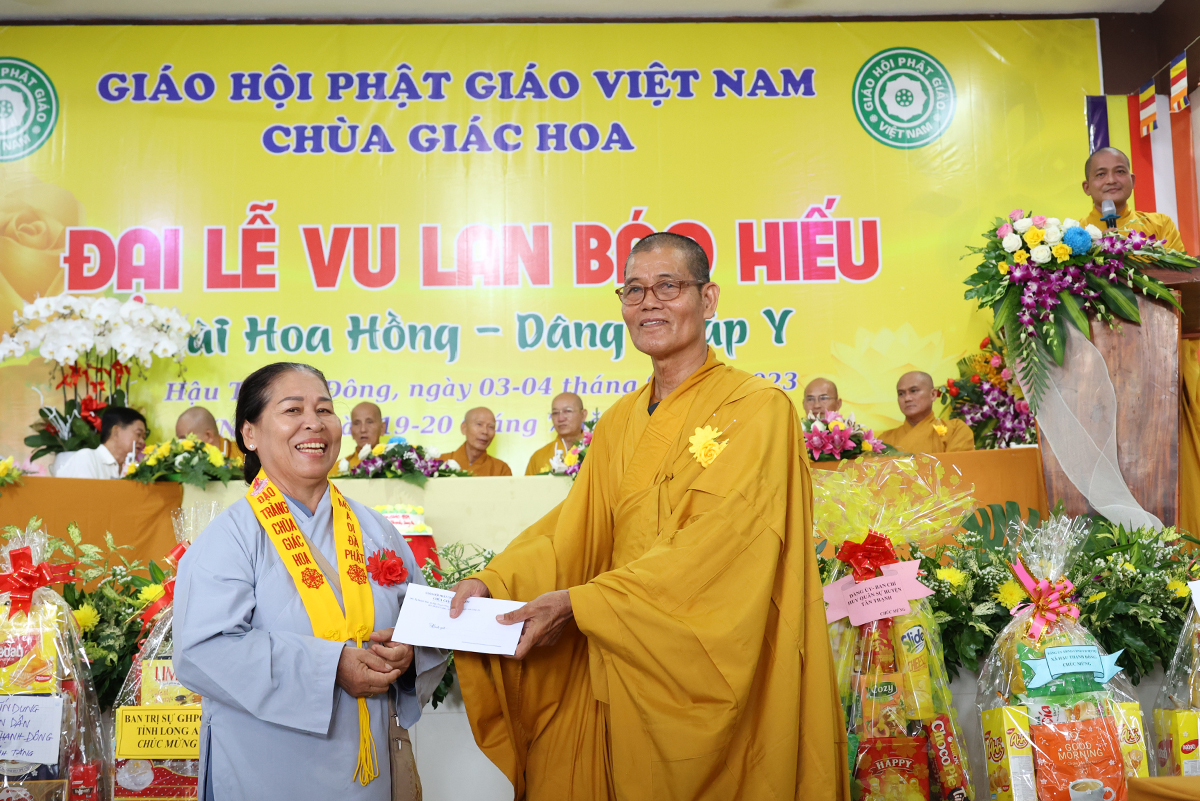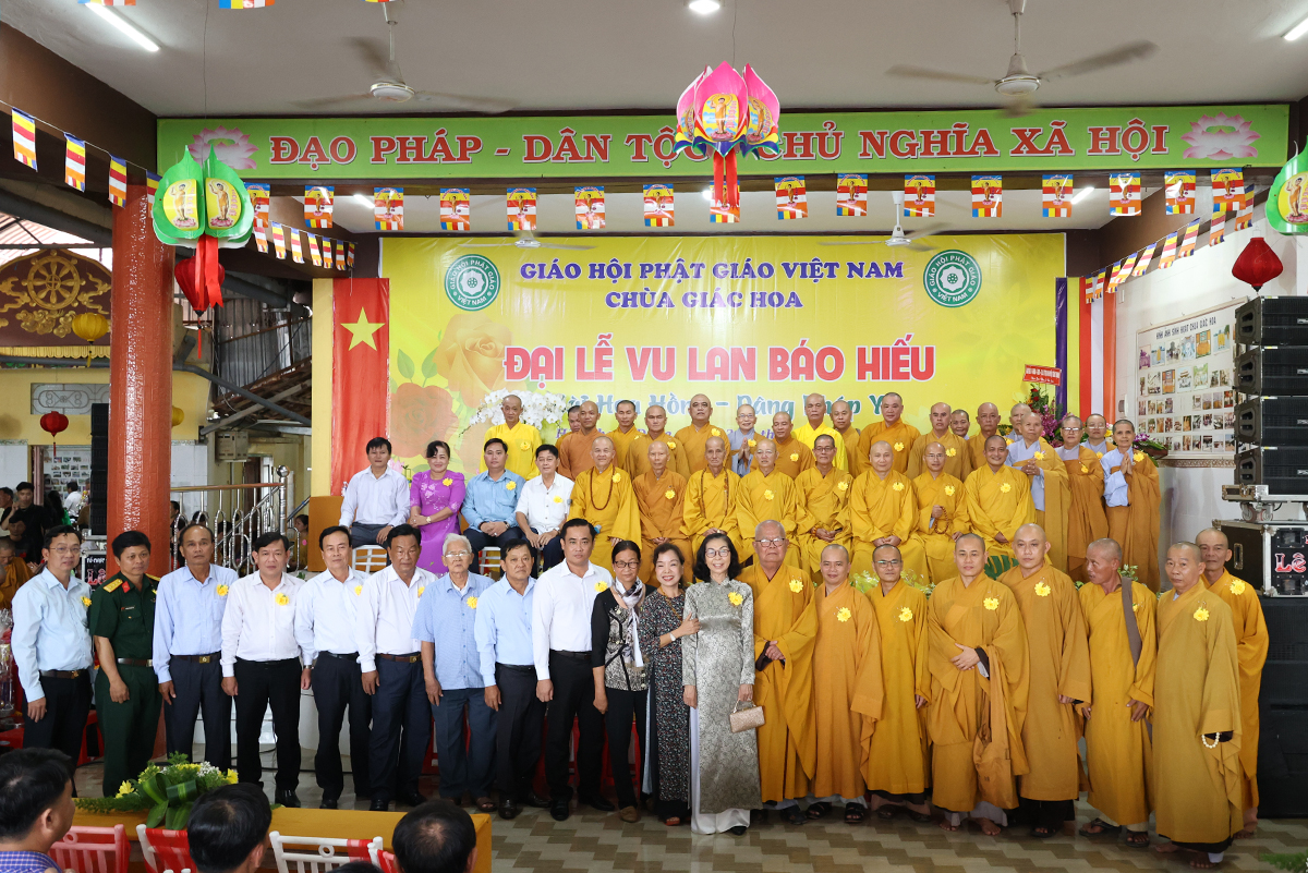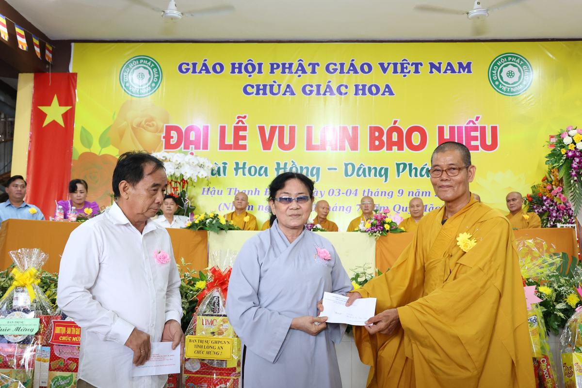 Ban đạo từ tại buổi lễ, Hòa Thượng Thích Minh Thiện – Ủy Viên HĐTS, Phó trưởng Ban Hoằng pháp TƯ, Trưởng BTS GHPGVN tỉnh Long An đã tán dương công đức Thượng tọa trụ trì chùa Giác Hoa trên tinh thần hiếu đạo đã hướng dẫn Phật tử đạo tràng tổ chức đại lễ Vu lan báo hiếu để nhớ ơn đến ân sinh dưỡng của hai đấng sinh thành cha và mẹ. Hòa thượng cũng chia sẻ về ý nghĩa tứ trọng ân, khuyến tấn Phật tử thực tập hạnh hiếu, sống và làm việc có ý nghĩa để xứng đáng là một người con Phật.