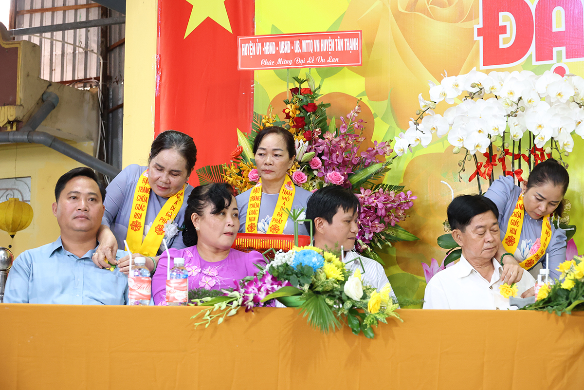 Quang lâm chứng minh và tham dự có sự hiện diện của Hòa thượng Thích Huệ Hồng, Hòa thượng Thích Quảng Ý – Chứng minh BTS GHPGVN tỉnh Long An; Hòa Thượng Thích Minh Thiện – Ủy Viên HĐTS, Phó trưởng Ban Hoằng pháp TƯ, Trưởng BTS GHPGVN tỉnh Long An; Thượng tọa Thích Quảng Tâm – Ủy viên HĐTS, Phó trưởng Ban Từ thiện TƯ, Phó trưởng Ban Thường trực BTS GHPGVN tỉnh Long An; Thượng tọa Thích Lệ Trí – Ủy Viên HĐTS, Phó trưởng Ban Văn hóa TƯ, Phó trưởng BTS, Trưởng ban Giáo dục Phật giáo GHPGVN tỉnh Long An; Thượng tọa Thích Đức Hoàng – Phó trưởng BTS GHPGVN tỉnh Long An; Thượng tọa Thích Lệ Tấn – Ủy viên thường trực BTS, Phó Ban Từ thiện BTS GHPGVN tỉnh Long An, Trưởng BTS GHPGVN huyện Tân Thạnh, trụ trì chùa Giác Hoa, trưởng Ban tổ chức đại lễ; Thượng tọa Thích Lệ Thông – Ủy viên BTS, Phó trưởng BTS GHPGVN huyện Tân Thạnh; chư Tôn đức Thường trực BTS GHPG tỉnh Long An, chư Tôn đức thường trực BTS huyện Tân Thạnh, chư Tôn đức trụ trì các tự, viện trong và ngoài tỉnh cùng đông đảo Phật tử đồng tham dự.