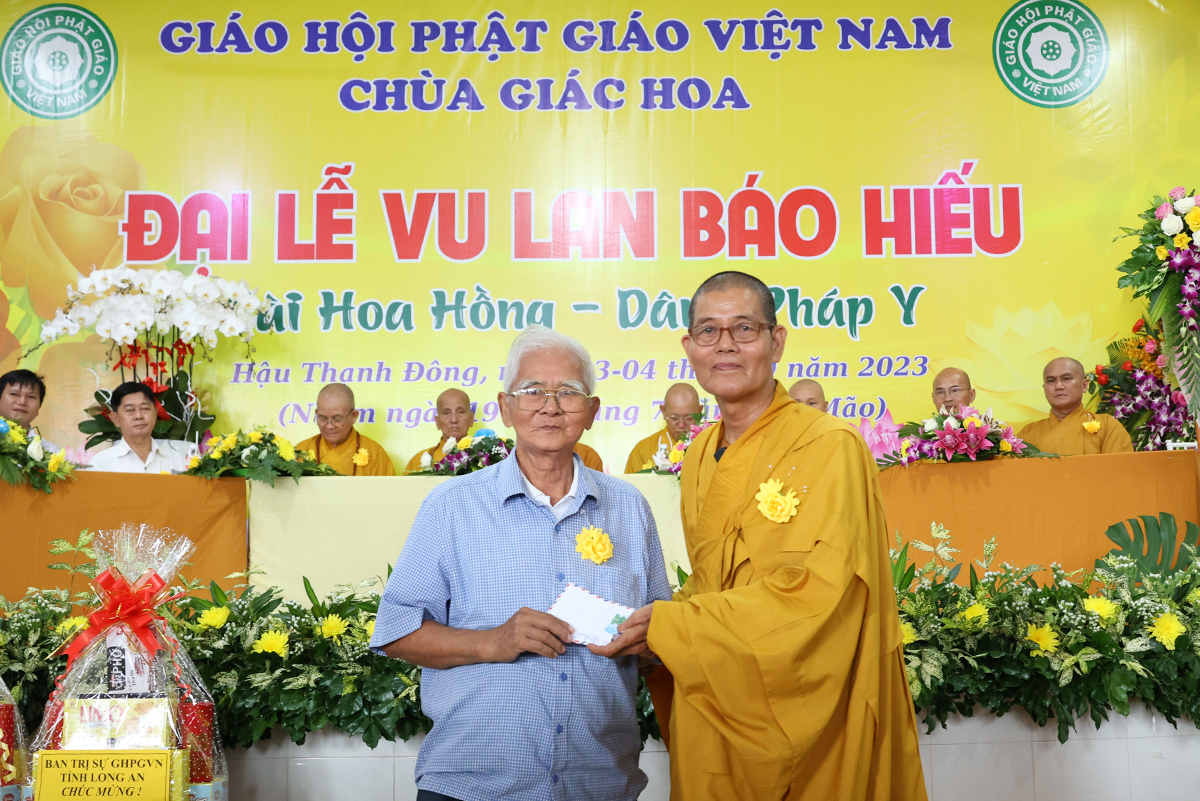 Trong tinh thần Tri ân và Báo ân, sáng ngày 5/9/2023 (nhằm ngày 21/7 năm Quý Mão) tại chùa Giác Hoa, xã Hậu Thạnh Đông, huyện Tân Thạnh, tỉnh Long An đã trang nghiêm tổ chức đại lễ Vu lan báo hiếu PL: 2567 – DL: 2023 và cài hoa hồng tưởng nhớ tứ trọng ân.