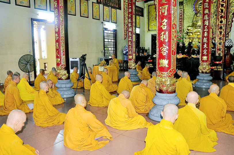 Sau phần nghi thức hoàn mãn, Hòa thượng Thích Minh Thiện đã có những lời sách tấn đến các hành giả an cư. Ngài chúc mừng chư Tăng trong ba tháng an cư đã tịnh ý, thúc liễm thân tâm, thành tựu Giới, Định, Tuệ, đạo hạnh trang nghiêm, xứng đáng bậc “trụ pháp vương gia, trì Như Lai tạng”. Tuy nhiên, con đường tu học là một cuộc hành trình dài xa, cần có sự phát tâm kiên trì dũng mãnh. Vì vậy, Hòa thượng ân cần nhắc nhở chư Tăng, hành giả, những vị mới đăng đàn thọ giới, những vị mới kết thiện duyên trong ngôi nhà Phật pháp, hãy nỗ lực tiến tu, học tập nghi thức Thiền môn, khiêm cung thân cận bạn lành, cầu học Minh sư, tích lũy công đức, phát huy hạnh nghiệp. Có như thế, ngôi nhà chánh pháp mới ngày càng vững mạnh, mới gọi là công đức cúng dường Tam Bảo cao thượng nhất.