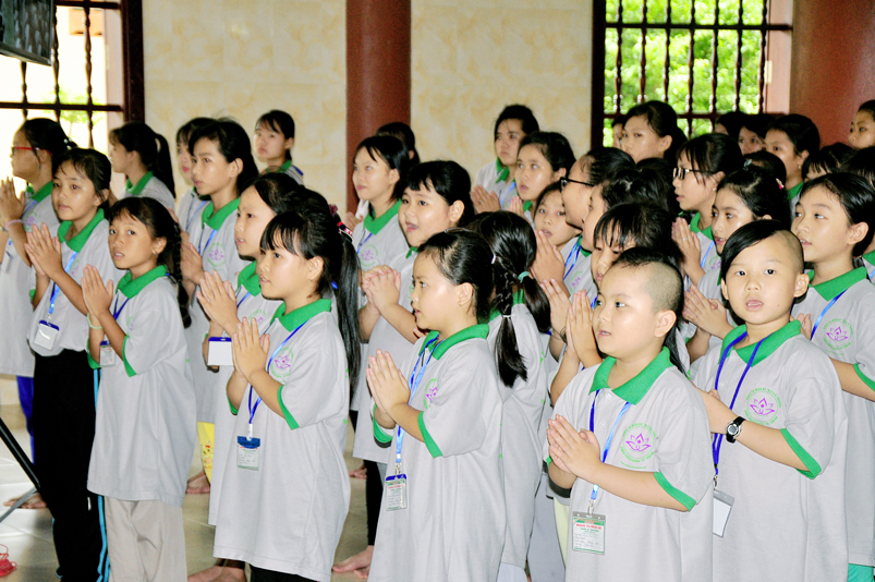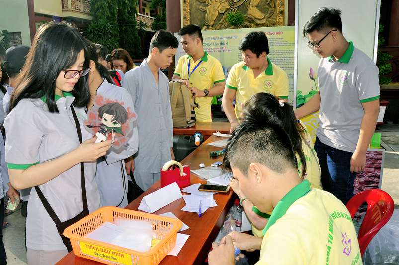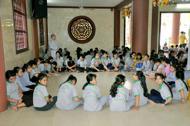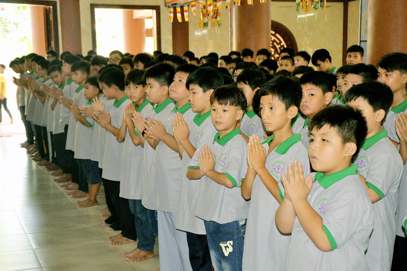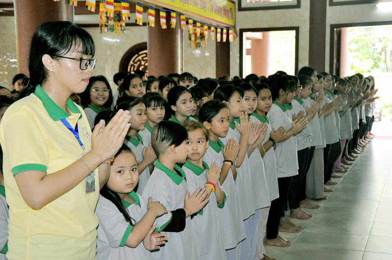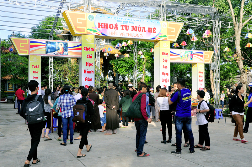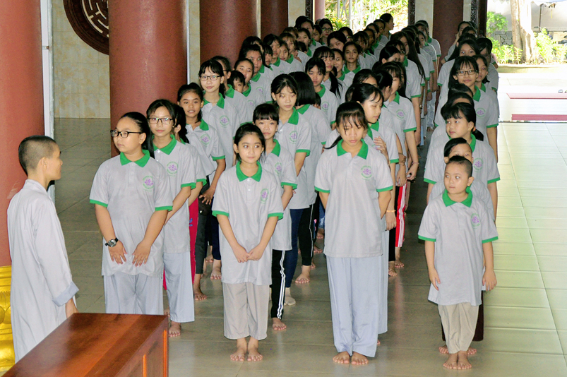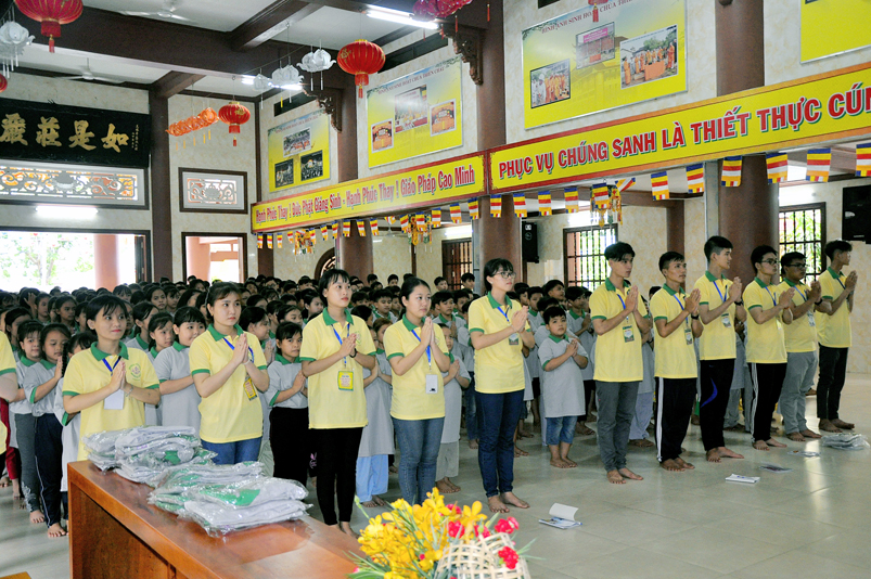 Từ sáng sớm, các em khoá sinh từ các nơi đã đến Chùa Thiên Châu để đăng ký và chính thức tham dự khoá tu, với số lượng 404 em. Sau phần đăng ký, ban Tổ chức cũng như các bạn tình nguyện viên đã sinh hoạt về oai nghi cho các em khoá sinh để các em hiểu hơn về cách sinh hoạt của thiền môn và nội quy khóa tu.