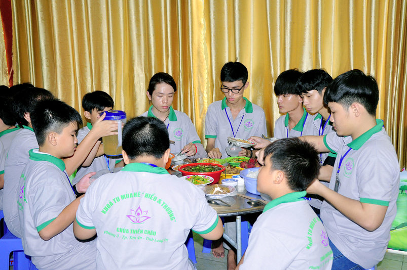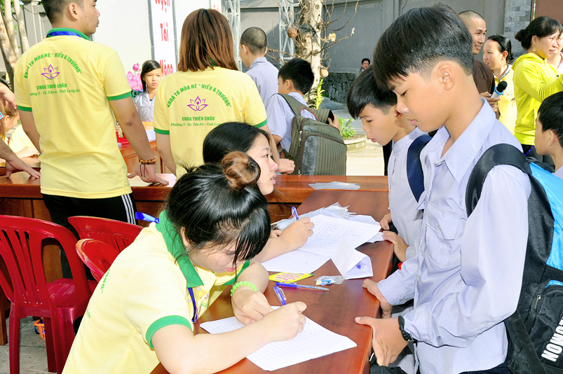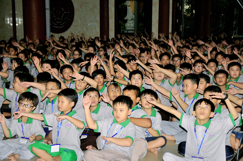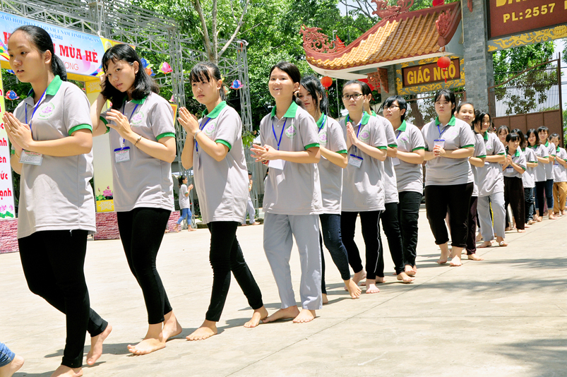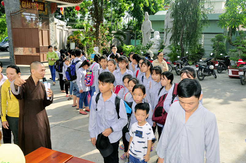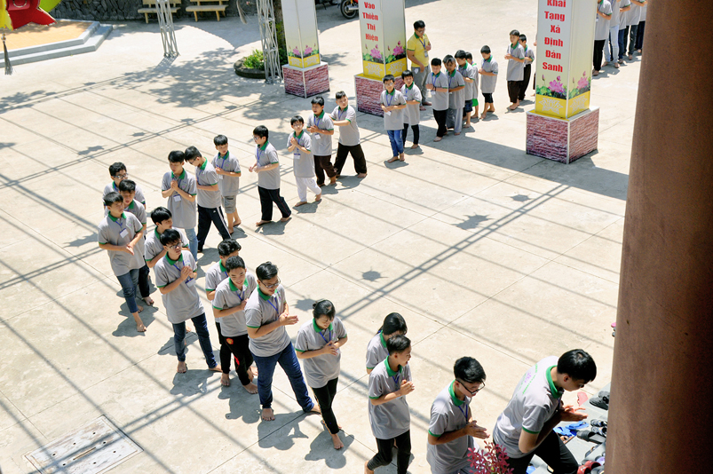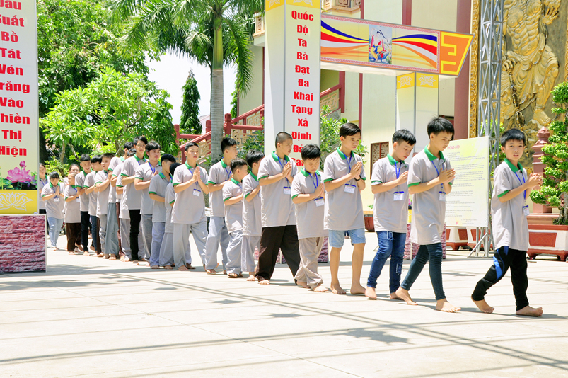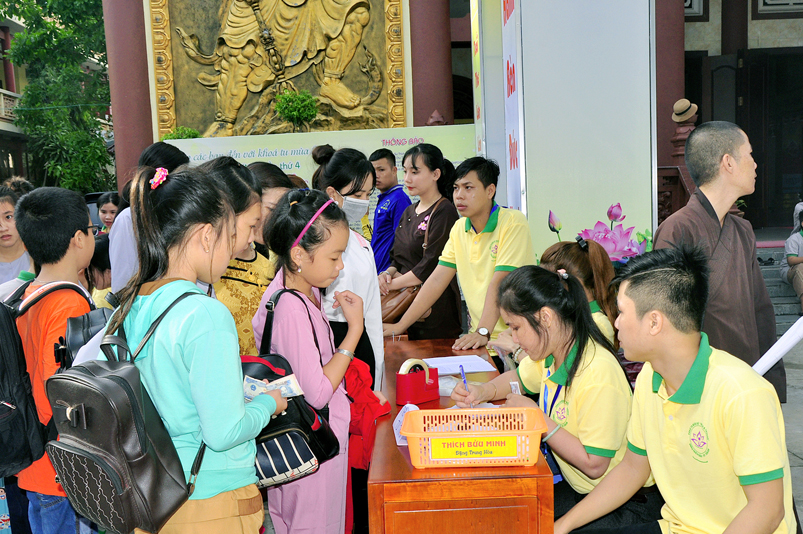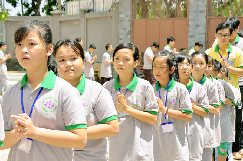 Từ sáng sớm, các em khoá sinh từ các nơi đã đến Chùa Thiên Châu để đăng ký và chính thức tham dự khoá tu, với số lượng 404 em. Sau phần đăng ký, ban Tổ chức cũng như các bạn tình nguyện viên đã sinh hoạt về oai nghi cho các em khoá sinh để các em hiểu hơn về cách sinh hoạt của thiền môn và nội quy khóa tu.