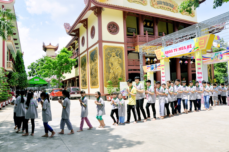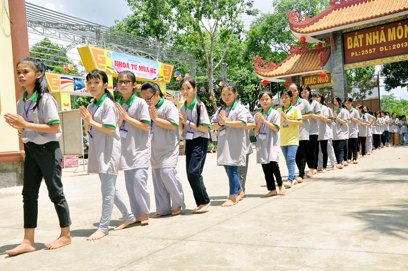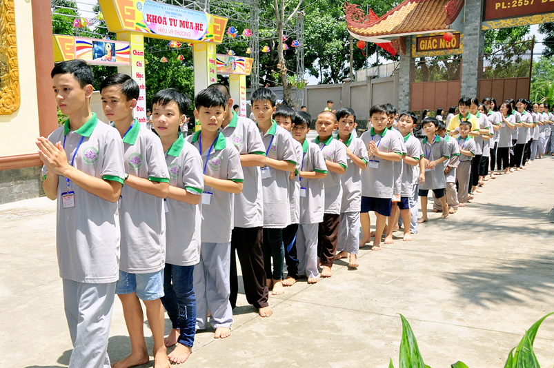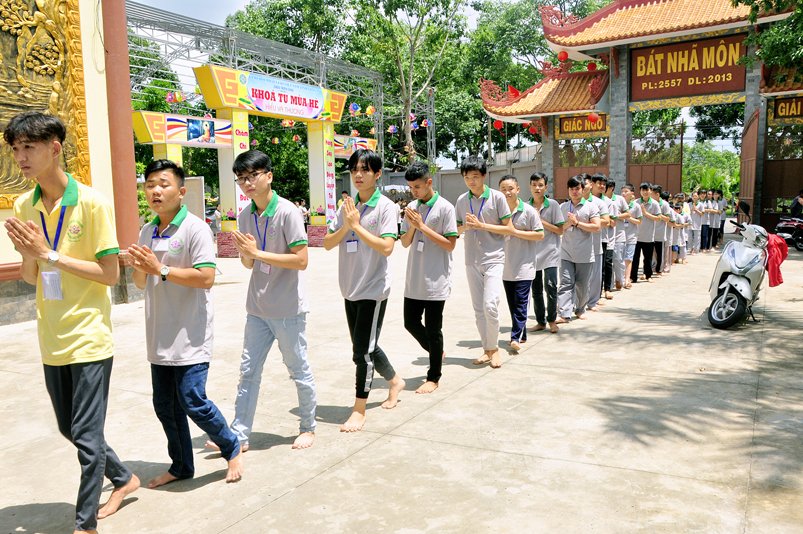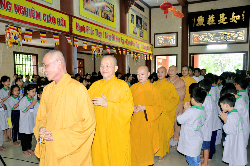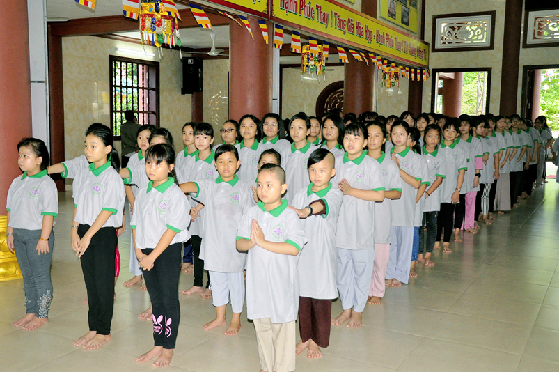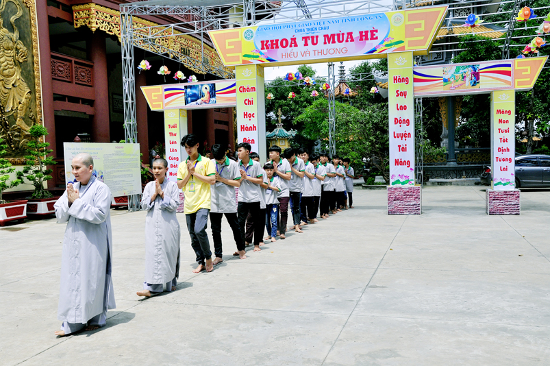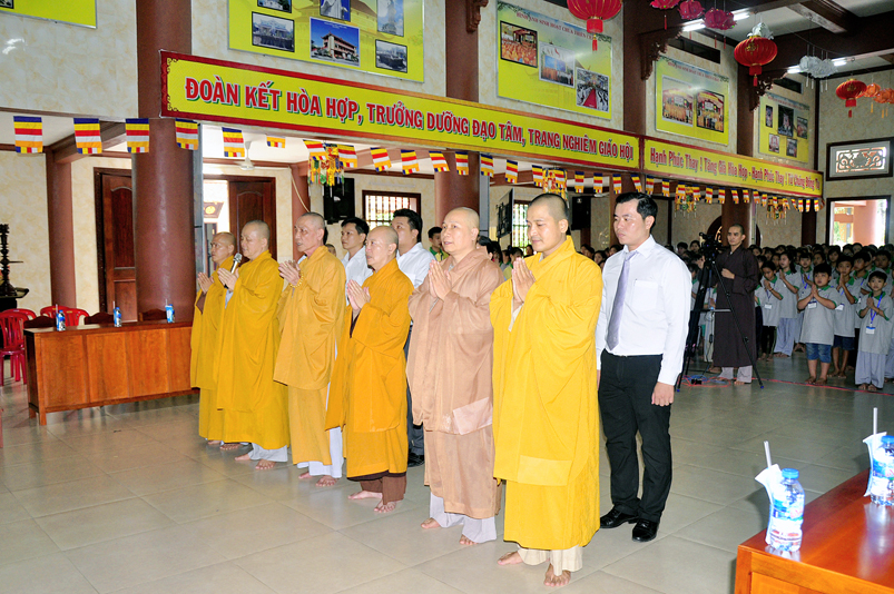 Đúng 14h00, Lễ Khai Mạc Khoá Tu Mùa Hè được chính thức cử hành long trọng. Quang lâm và chứng minh buổi lễ có: Hoà Thượng Thích Thiện Huệ – Chứng Minh Ban Trị Sự Phật Giáo tỉnh Long An; Hoà Thượng Thích Minh Thiện – UV HĐTS, Phó Trưởng Ban Hoằng Pháp Trung Ương, Trưởng Ban Trị Sự GHPGVN tỉnh Long An, Trưởng Ban Tổ Chức Khoá Tu Mùa Hè; Thượng Toạ Thích Quảng Tâm – UV HĐTS, Phó Trưởng Ban Thường Trực BTS GHPGVN tỉnh Long An, Trưởng Ban Từ Thiện GHPGVN tỉnh Long An; Đại Đức Thích Lệ Trí – UV HĐTS, Phó Ban Trị Sự GHPGVN tỉnh Long An, Trưởng Ban Giáo Dục Phật Giáo tỉnh Long An; Đại Đức Thích Đức Hoàng – Phó Ban Trị Sự GHPGVN tỉnh Long An; Đại Đức Thích Lệ Duyên – Chánh Thư Ký Ban Trị Sự tỉnh Long An, Trưởng Ban Phật Giáo Quốc Tế tỉnh Long An; Đại Đức Thích An Nhựt – Trưởng Ban Hướng Dẫn Phật Tử GHPGVN tỉnh Long An.