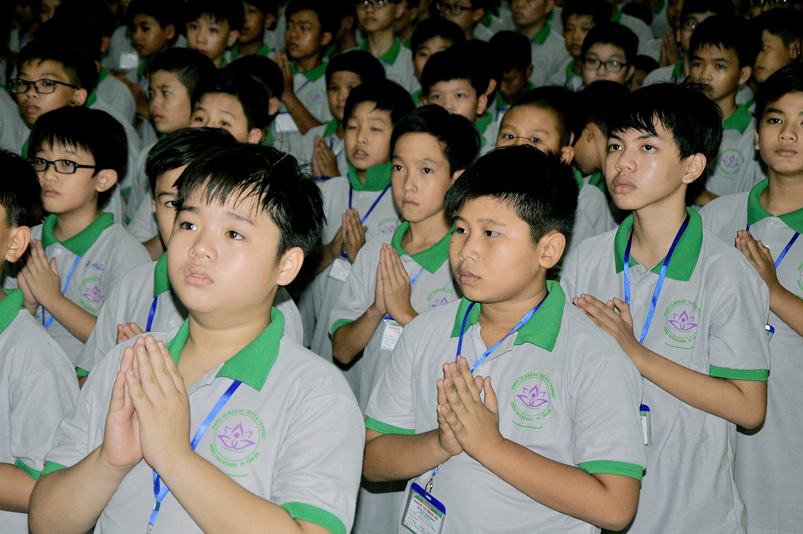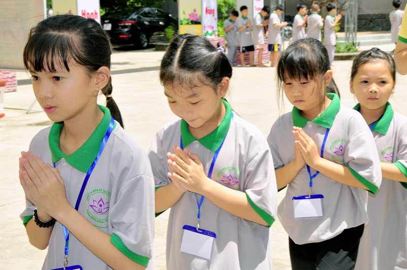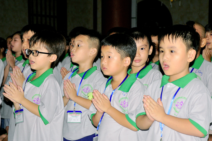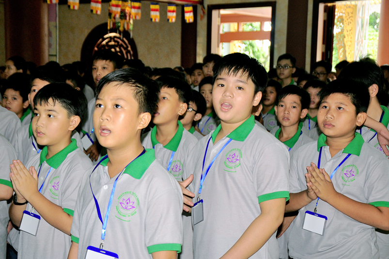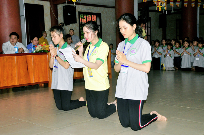 Các chúng trưởng đã đại diện toàn thể Khoá Sinh đối trước Chư Tôn Đức Chứng Minh phát nguyện tu học trong Khoá Tu Mùa Hè, các em Khoá Sinh bày tỏ niềm vui của mình khi được trở về lại Chùa Thiên Châu tham dự khoá tu năm nay sau những tháng ngày học tập căng thẳng và hứa nghiêm chỉnh chấp hành thời khoá và nỗ lực tu học cũng như là lao tác công quả, đem những điều tốt đẹp đã học chia sẻ với mọi người.