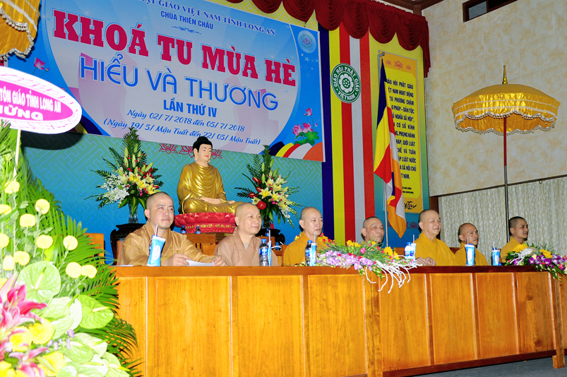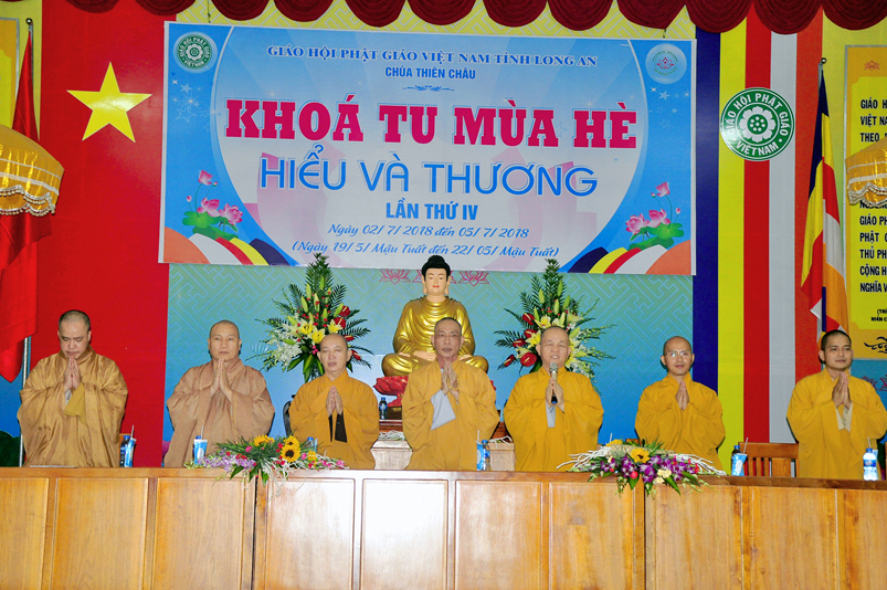 Hôm nay ngày 2 tháng 7 năm 2018 (Nhằm ngày 19/5 Mậu Tuẩt), tại Chùa Thiên Châu – Văn phòng Ban Trị sự ( BTS) Giáo Hội Phật Giáo Việt Nam (GHPGVN) tỉnh Long An, số 101, Huỳnh Văn Nhứt, P.3, Tp. Tân An, Long An, long trọng diễn ra buổi lễ Khai mạc Khoá Tu Mùa Hè lần 4 với chủ đề “Hiểu Và Thương”.