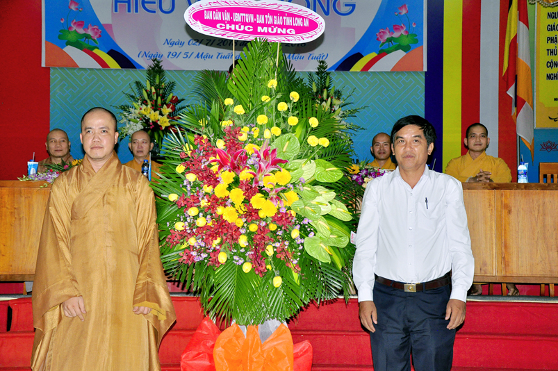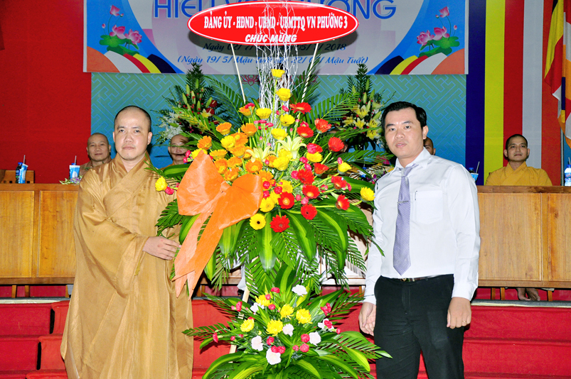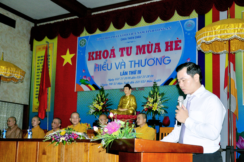 Đại diện Chính Quyền sở tại ông Võ Hồng Thảo – Phó Bí Thư Đảng Uỷ, Chủ Tịch UBND Phường 3 đã có lời phát biểu. Ông bày tỏ niềm hoan hỷ và hoan nghinh việc tổ chức khoá tu và mong muốn rằng Ban Trị Sự tỉnh Long An sẽ tổ chức nhiều khoá tu hơn nữa nhằm tạo dựng sân chơi lành mạnh, bổ ích và giáo dục cho các thanh thiếu niên giúp các em hướng đến “ Chân – Thiện – Mỹ”, tránh xa những tệ nạn xã hội. Ông đã thay mặt toàn thể cơ quan Chính quyền các cấp kính chúc khoá tu thành công tốt đẹp và chúc sức khoẻ đến Chư Tôn Đức và các em khoá sinh.