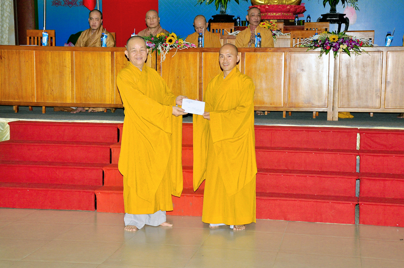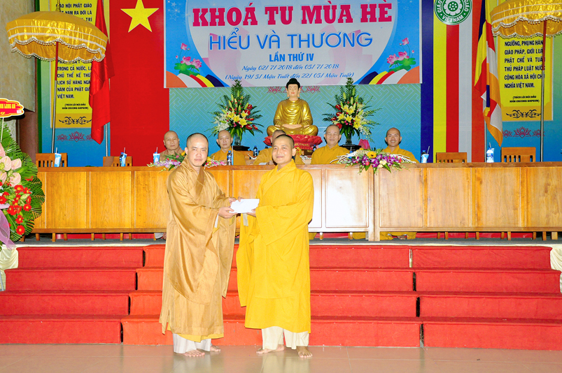 Hoà Thượng Thích Thiện Huệ đã trao tặng đến các Khoá sinh 400 quyển tập để cho các em ghi chép những lời hay ý đẹp cũng như những lời dạy của chư tôn đức. Đại Đức Thích Lệ Trí thay mặt cho Ban Trị Sự Thành Phố Tân An trao tặng tịnh tài cho Ban Tổ Chức Khoá Tu và cũng có đôi lời với toàn thể các khoá sinh.