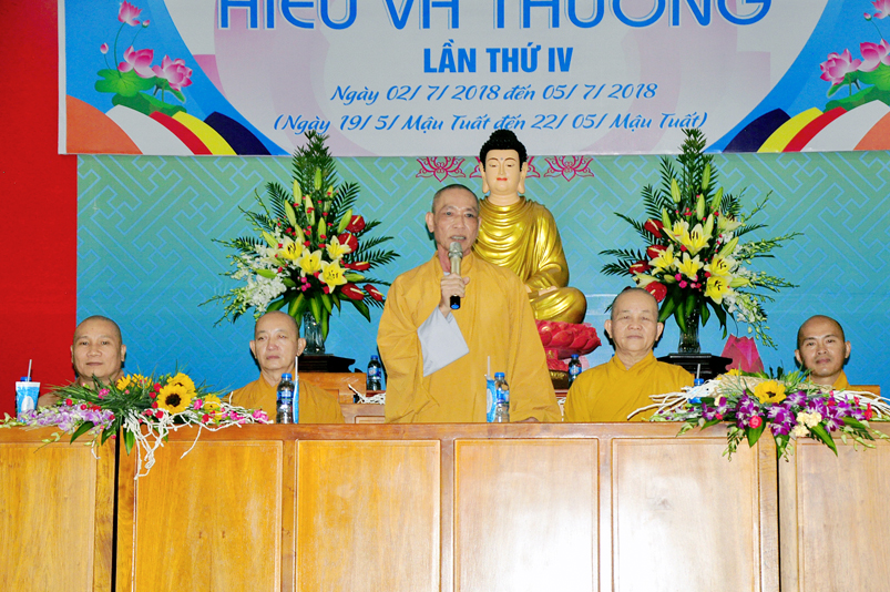 Hoà thượng Thích Thiện Huệ thay mặt cho toàn thể Chư Tôn Đức Chứng Minh ban lời đạo từ sách tấn đến toàn thể các khoá sinh. Trước tiên Hoà Thượng đã gửi lời cảm ơn đến Ban Tổ Chức, Ngài nhấn mạnh về tinh thần của đạo Phật là “Từ Bi và Trí Tuệ”, và lấy Trí Tuệ làm gốc, nếu không có trí tuệ thì sự nghiệp sẽ không thành tựu. Về bối cảnh của xã hội ngày càng phát triển về vật chất mà ít có đời sống về tinh thần, Ngài tán thán công đức về việc tổ chức Khoá Tu Mùa Hè và mong muốn các em khoá sinh hãy thực tập tốt về những tấm gương tốt mà đức Phật đã dạy. Ngài mong muốn những khoá tu ngày càng phát triển và mong Chư Tôn Đức trong Ban Tổ Chức luôn luôn nhắc nhở để các em khoá sinh để sau khi tham dự Khoá Tu sẽ trở thành người hữu dụng cho xã hội. Cuối lời Hòa thượng kính chúc Chư Tôn Đức trong ban tổ chức, quý cấp lãnh đạo và toàn thể Khóa sinh vô lượng an lạc vô lượng kiết tường.