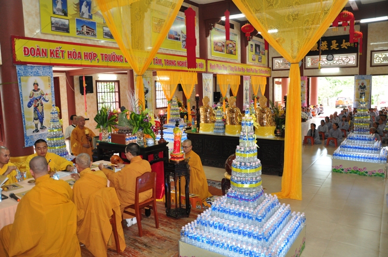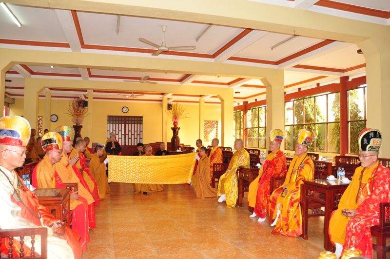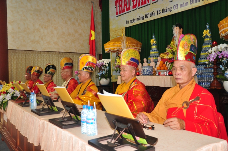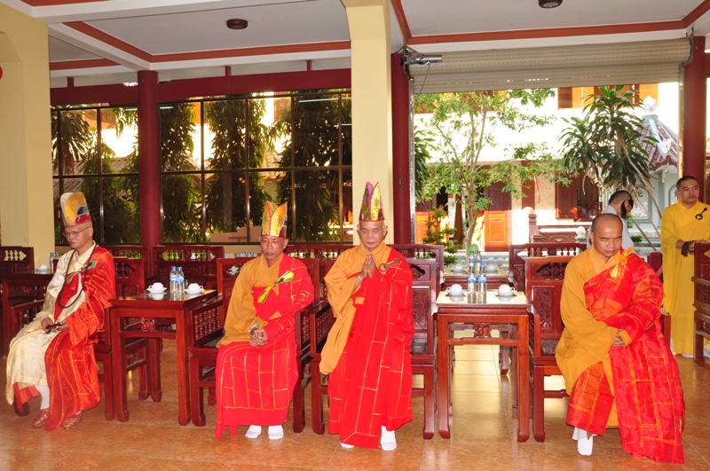 Chứng minh trai đàn gồm có: HT Thích Tấn Đạt – UV TT HĐTS, Phó văn phòng 2 TW GH, Phó ban thường trực ban Hoằng pháp TW; HT Thích Giác Liêm – UV HĐTS, phó văn phòng 2 TW GH, Phó ban Hoằng pháp TW; HT Thích Phước Toàn – UV ban Văn hoá TW, HT Thích Thiện Huệ – Chứng minh BTS GHPGVN tỉnh Long An; HT Thích Minh Thiện – UV HĐTS, Trưởng ban BTS GHPGVN tỉnh Long An; TT Thích Minh Thọ – UV HĐTS, Phó ban thường trực BTS GHPGVN tỉnh Long An; ĐĐ Thích Lệ Trí – UV HĐTS, Chánh thư ký BTS GHPGVN tỉnh Long An cùng chư tôn đức tăng ni trong BTS GHPGVN tỉnh Long An; trụ trì các tự viện và quý tăng sinh trường TCPHLA.
