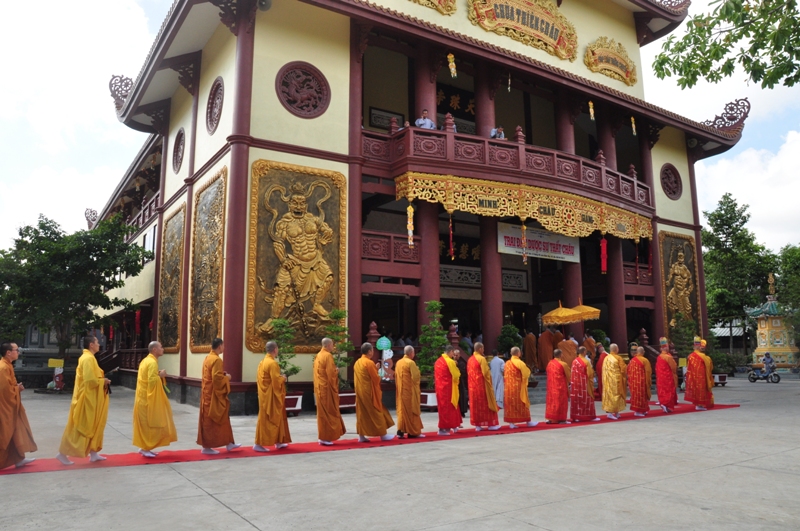 Buổi lễ được diễn ra trang nghiêm trong các nghi thức tâm linh cầu nguyện với sám chủ là HT Thích Phước Toàn. Trong trai đàn, chư tôn hoà thượng chứng minh và thất vị đàn chủ Dược sư thất đàn đăng đàn trang nghiêm cùng với hội chúng nhất tâm cầu nguyện.