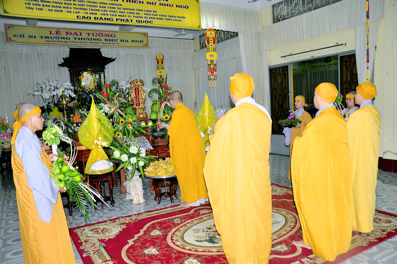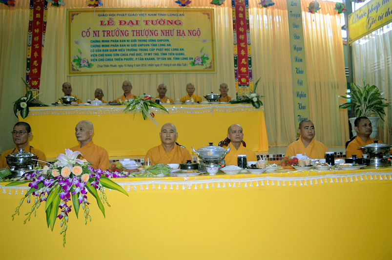 Chư Tôn Đức Ni: Ni trưởng Thích Nữ Như Đức- Chứng minh Phân Ban Ni Giới T.Ư, viện chủ chùa Dược Sư quận Bình Thạnh; Ni trưởng Thích Nữ. Đạt Thuận- Viện chủ chùa Linh Sơn, Quận 8; Ni trưởng Thích Nữ Như Ngọc- chứng minh Phân Ban Ni Giới Bến Tre, viện chủ chùa Phú Thọ; NT. Thích Nữ Như Minh- Viện chủa chùa Sắc Tứ Linh Thứu, Tiền Giang; Ni trưởng Thích Nữ Như Xuân- Trưởng Ban Quản Trị Tổ Đình Từ Nghiêm, Quận 10 cùng Chư tôn giáo phẩm trong và ngoài tỉnh Long An thân lâm chứng minh.