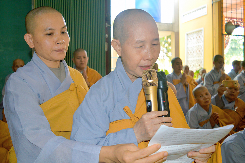 Với lòng xúc động bùi ngùi, Ni trưởng Thích nữ Tuệ Đăng Phó trưởng ban, Trưởng Phân ban Ni giới PGVN tỉnh Long An, viện chủ chùa Vĩnh Phong đại diện môn nhân pháp quyến dâng lời tác bạch.