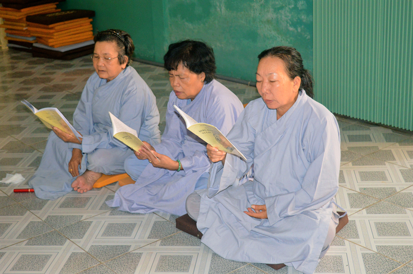 Trước đó, Tối ngày 9/9/2018 (30/7/Mậu Tuất) vào lúc 6h, Môn đồ pháp quyến chùa Thiên Phước thành kính cung đón chư Tôn giáo phẩm Ban Trị sự GHPGVN tỉnh Long An gồm HT. Thích Minh Thiện – Ủy viên HĐTS -Trưởng phó Ban hoằng pháp TW, Trưởng Ban Trị sự GHPGVN tỉnh Long An, Trụ trì chùa Thiên Châu; Thượng toạ Thích Minh Thọ – Ủy viên HĐTS, Phó trưởng Ban trị sự, Trưởng Ban Pháp Chế GHPGVN tỉnh Long An cùng Chư Tôn Thiền Đức tỉnh Long An quang lâm, khai kinh Phổ Hiền Hạnh Nguyện, thắp hương tưởng niệm cố giác linh Ni trưởng.