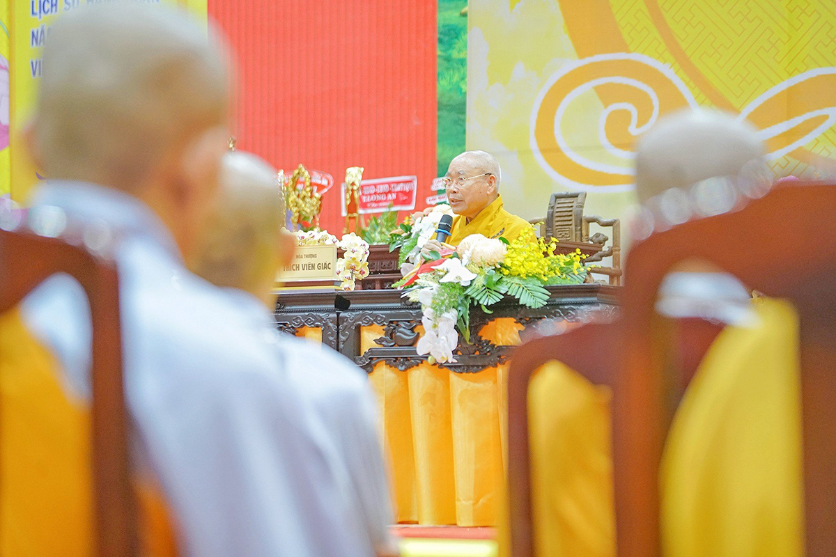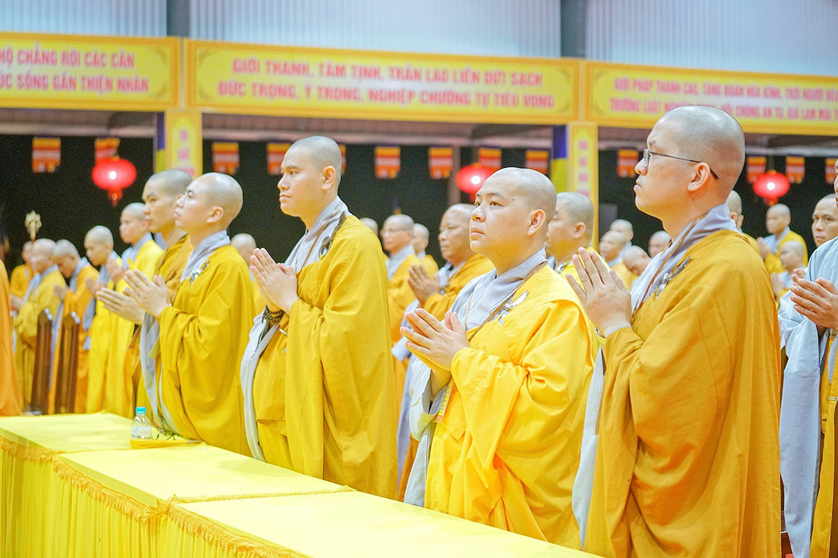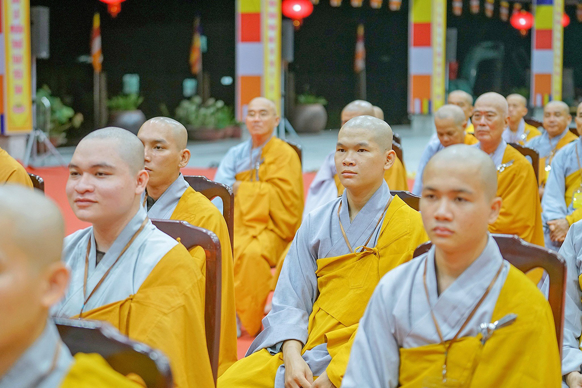 Đầu tiên, Hòa thượng có lời tán thán các Giới tử đã hội đủ duyên lành được xuất gia tu học, nay lại được đăng đàn thọ giới là một phước duyên thù thắng của người tu học Phật. Hòa thượng nhấn mạnh người tu học Phật thì bước đầu tiên là phải thọ giới, đối với giới Sa di có phát triển thêm để thanh tịnh tâm, còn giới Tỳ kheo trên cơ sở đó mà phát triển thành chất liệu của sự giải thoát, của bậc Thánh. Một vị Tăng có đầy đủ chất thì gọi là bậc Thánh, còn nếu chưa vẹn toàn thì gọi là Thánh hữu học, còn bậc ít hơn là bậc hoạt động Phật pháp nhưng nếu không có chất liệu ấy không thể gọi là Tăng. Phàm thân thì bị bản năng chi phối, Pháp thân thì đặt mình vào trong Pháp để hoàn thiện bản thân. Với 4 loại Thánh thiện: Thánh thiện toàn phần, Thánh thiện đa phần, Thánh thiện bán phần và Thánh thiện thiểu phần. Hòa thượng nhắc nhở các Giới tử hãy xem mình đang ở nơi nào trong Bốn đôi Tám vị.Hòa thượng mong mỏi các Giới tử hãy hiểu rõ Giới mà mình sẽ lãnh thọ, nuơng theo Giới bổn mà cố gắng giữ gìn, hành trì, tu tập, phát triển từ Giới sanh Định, từ Định phát sinh Tuệ.