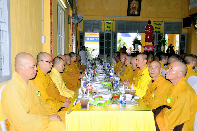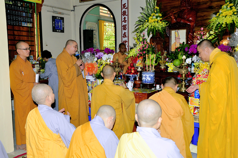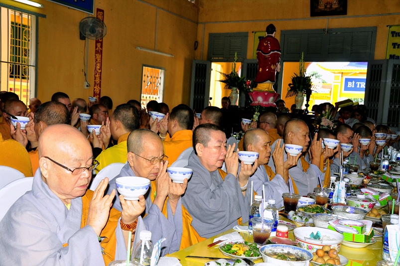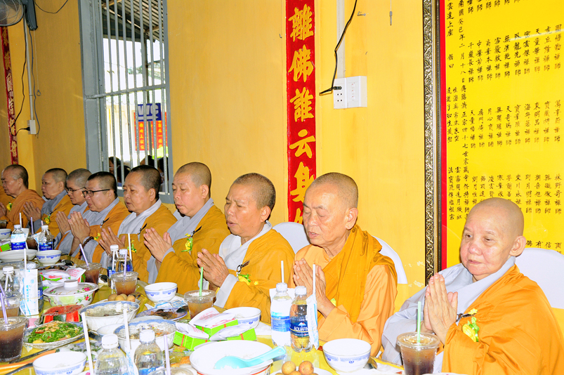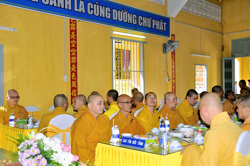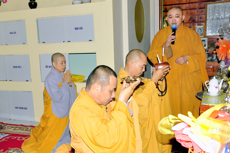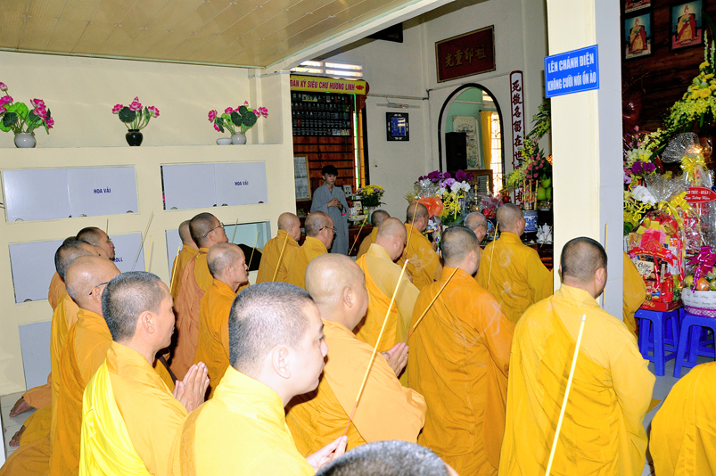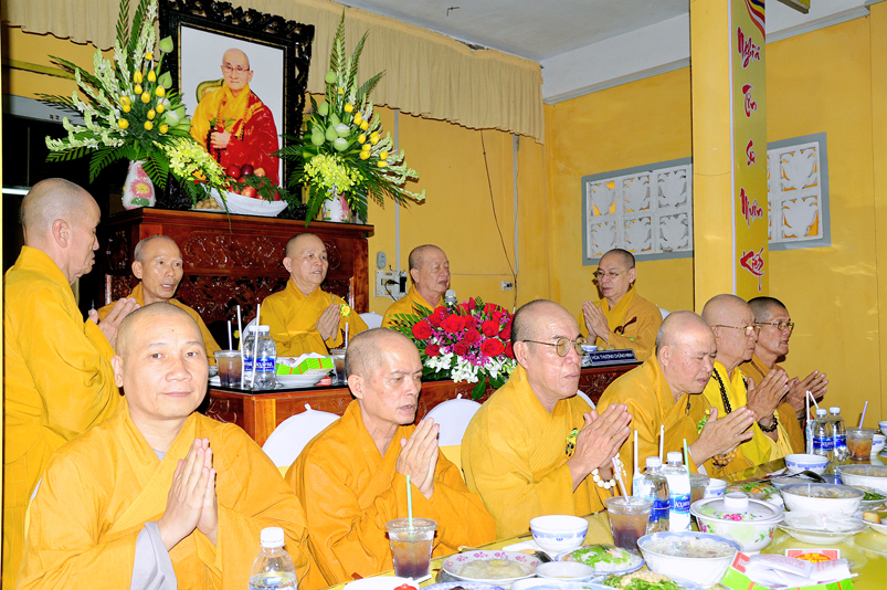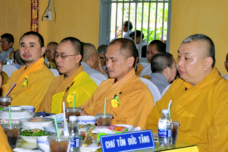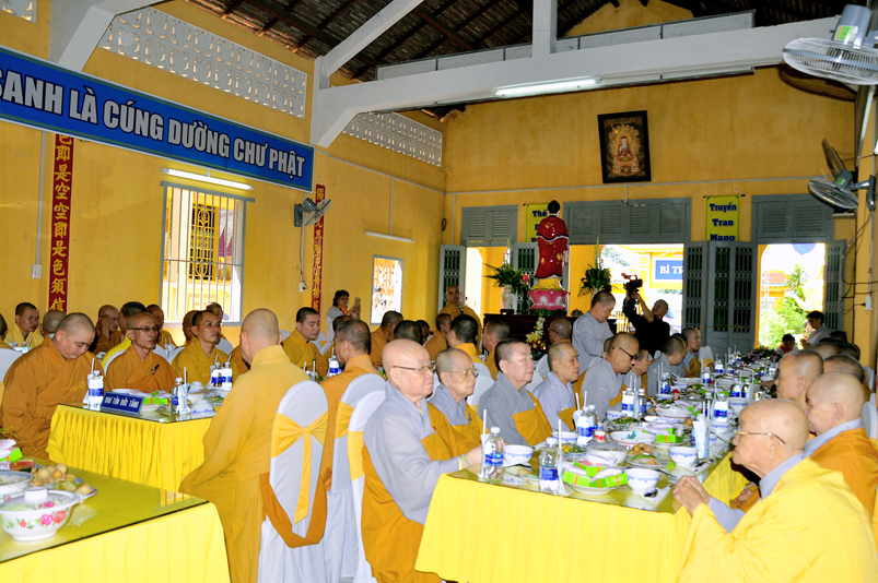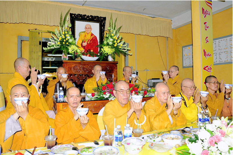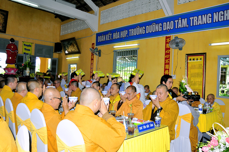 Sau các phần nghi lễ tụng kinh Vu Lan Báo Hiếu, Tiến Sư do HT. Thích Thiện Tài, Trưởng Ban Nghi Lễ GHPGVN tỉnh Long An đảm nhiệm, Ban Nghi lễ cung thỉnh Quý Tôn đức thân lâm Tổ đường thắp hương tưởng niệm Cố Trưởng lão và tiếp đó chứng dự trai đường.