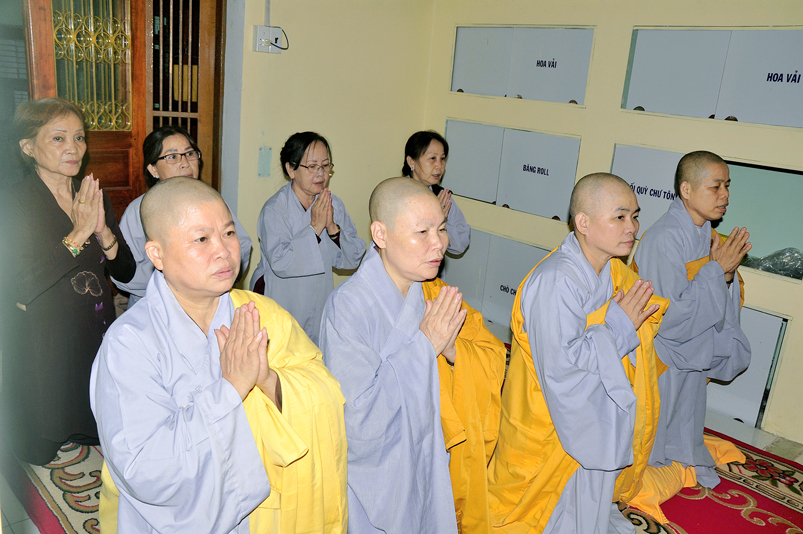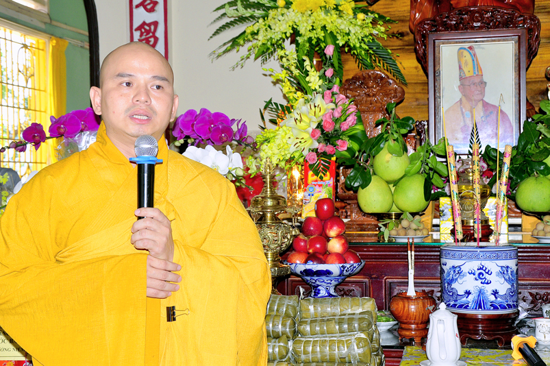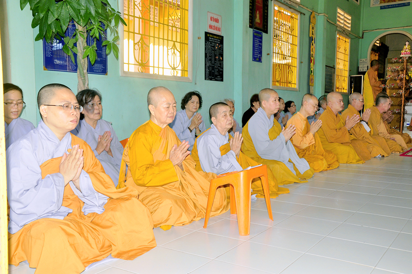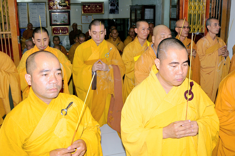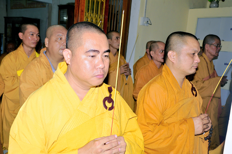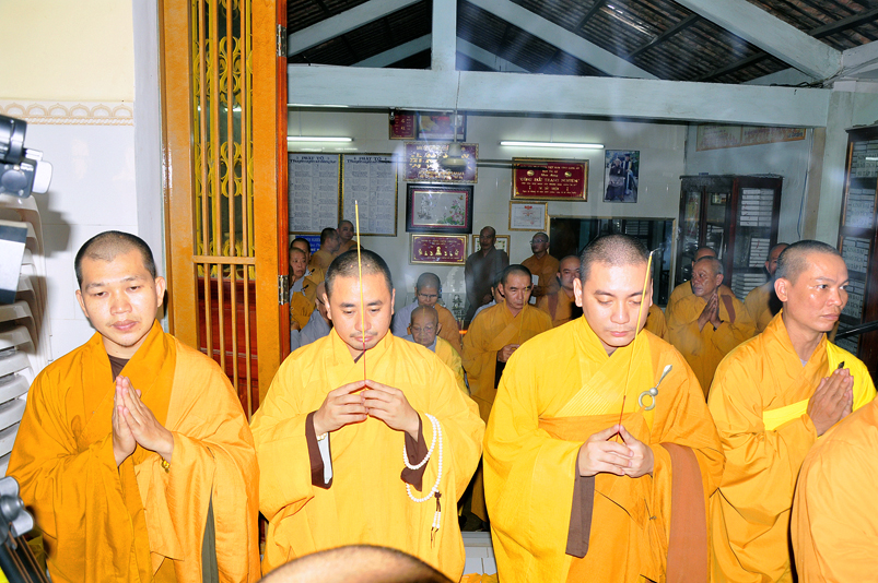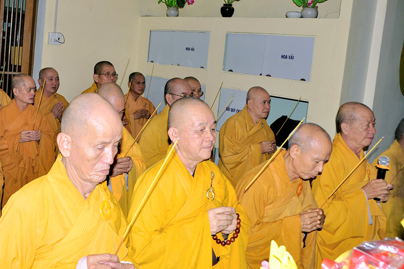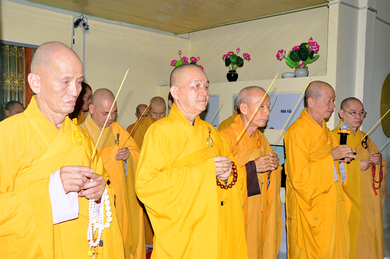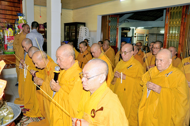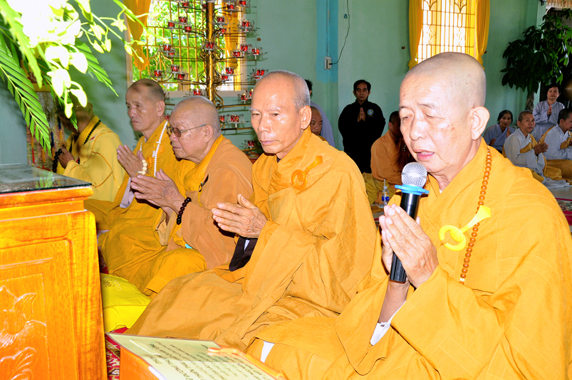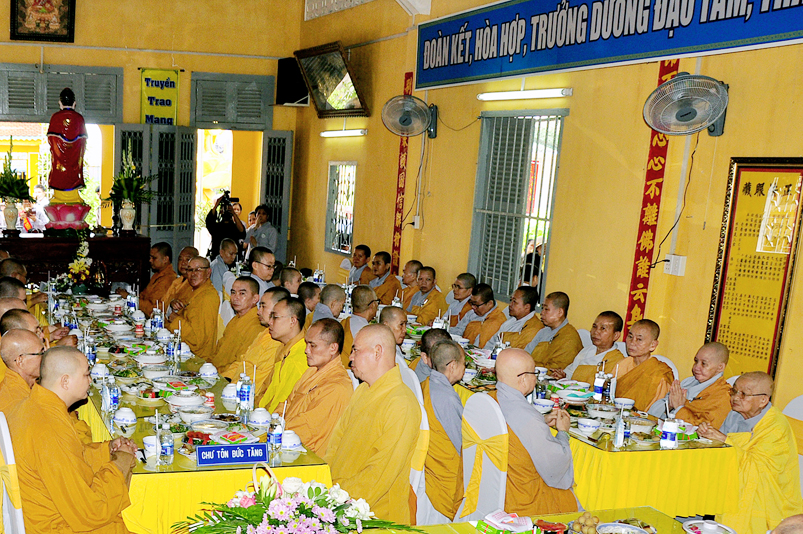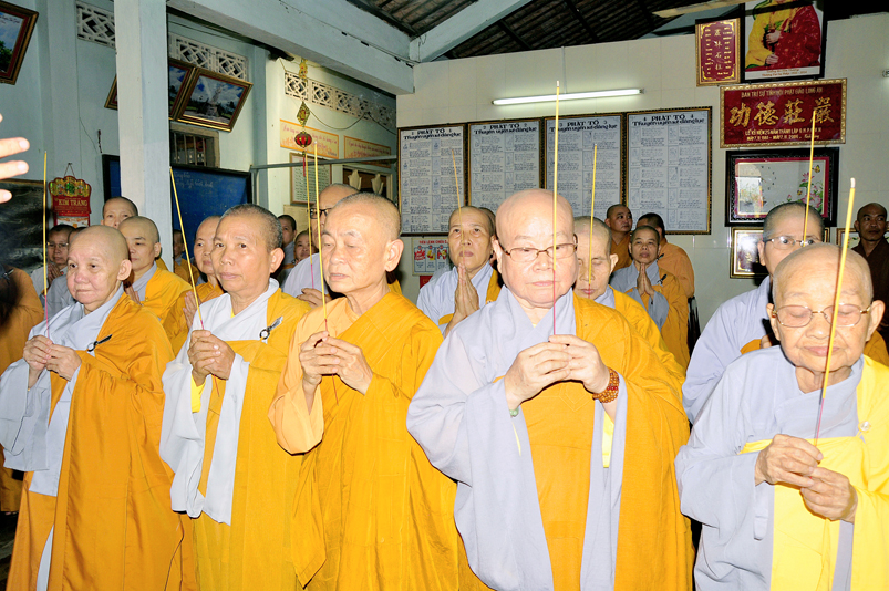 Sau các phần nghi lễ tụng kinh Vu Lan Báo Hiếu, Tiến Sư do HT. Thích Thiện Tài, Trưởng Ban Nghi Lễ GHPGVN tỉnh Long An đảm nhiệm, Ban Nghi lễ cung thỉnh Quý Tôn đức thân lâm Tổ đường thắp hương tưởng niệm Cố Trưởng lão và tiếp đó chứng dự trai đường.