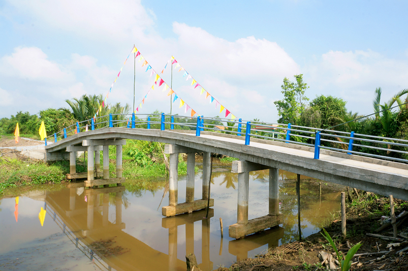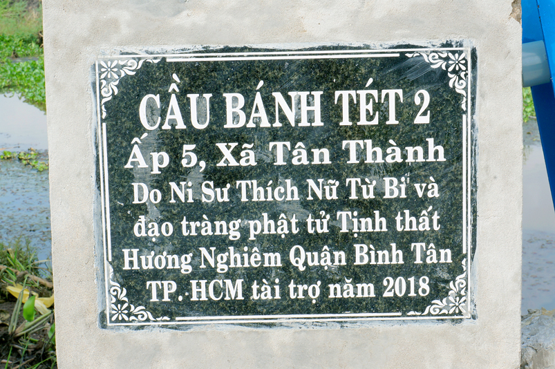 Cầu kênh Bánh Tét 2 được xây mới với tổng kinh phí 150 triệu đồng do Phật tử Tâm Tín( cư ngụ Tp. HCM) vận động Ni sư Thích nữ Từ Bi ( trụ trì Tịnh thất Hương Nghiêm, quận Bình Tân, Tp. HCM tài trợ 140 triệu đồng, 10 triệu còn lại do bà con nhân dân địa phương đóng góp. Cầu có chiều dài 26m, ngang 2,5m, qui cách bằng bê tông cốt thép, lưu thông bằng xe 2, 3 bánh; cầu gồm 6 nhịp với lan can 2 bên được thiết kế bằng thép ống, bảo đảm độ an toàn giao thông đường bộ, thông thuyền đường thủy, tạo điều kiện thuận lợi cho bà con các ấp trong xã liên thông nhau đi lại dễ dàng hơn, góp phần xây dựng nông thôn mới. Đặc biệt, câu kênh Bánh Tét 2 kết nối lưu thông 2 xã Tân Thành, huyện Thủ Thừa và xã Bình Đức huyện Bến Lức
