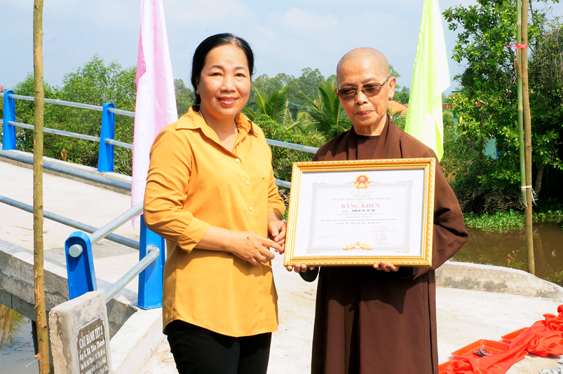 Tham dự lễ khánh thành cầu có Đại đức Thích Huệ Thông- Trưởng ban Thông tin Truyền thông GHPGVN tỉnh Long An; Đai đức Thích An Lộc, Đại đức Thích Đạo Ngộ; Ni sư Thích Nữ Từ Bi- Trụ trì tịnh Thất Hương Nghiên, Quận Bình Tân, Tp. HCM.