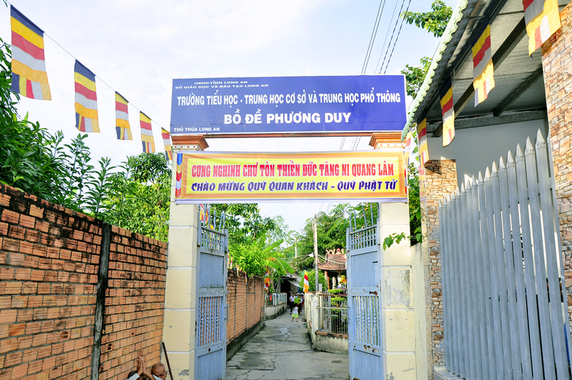 Chùa Long Thạnh, xã Bình Phong Thạnh, huyện Thủ Thừa, tỉnh Long An do Hoà thượng Thích Quảng An khai sơn năm 1967. Đến năm 1990, Chùa được Thượng Toạ Thích Quảng Tâm (đệ tử HT. Thích Quảng An) kế thừa trụ trì. Qua thời gian, chùa đã xuống cấp trầm trọng. Đặc biệt năm 1984 TT. Thích Quảng Tâm có dịp đi nhiều xã vùng sâu trong huyện làm từ thiện thấy cảnh học sinh cắp sách đến trường xa hàng chục cây số, vượt qua những con sông nguy hiểm, nên sau khi về chùa, Thượng toạ quyết định cho các em tá túc ở đây để thuận tiện cho việc học hành. Không chỉ vậy, Thượng toạ còn lo toàn bộ bữa ăn miễn phí cho tất cả các em. Những trường hợp trẻ mồ côi, lang thang cơ nhỡ, hoàn cảnh gia đình khó khăn ở các địa phương khác vẫn được nhà chùa cưu mang.