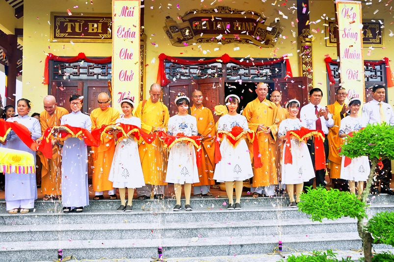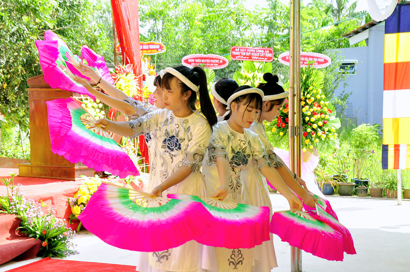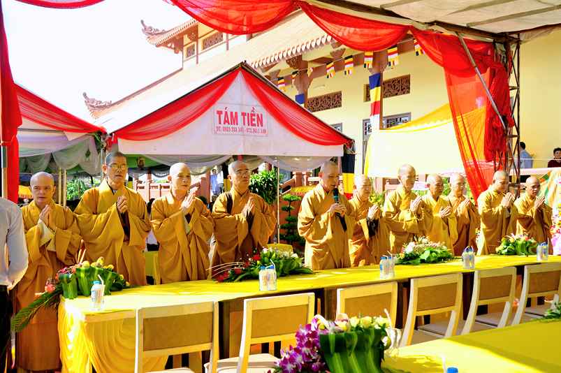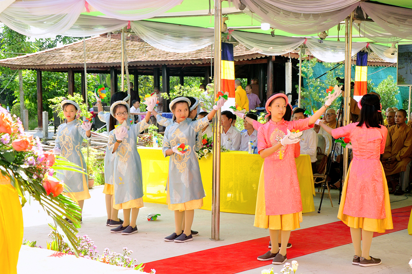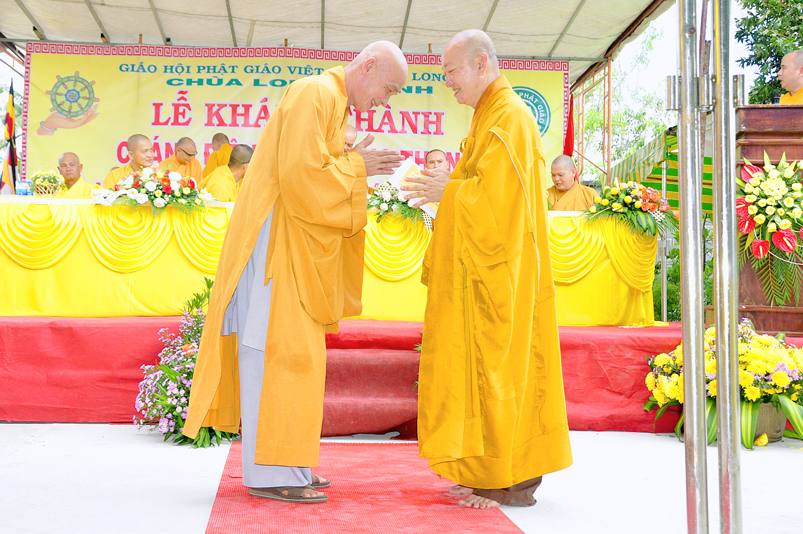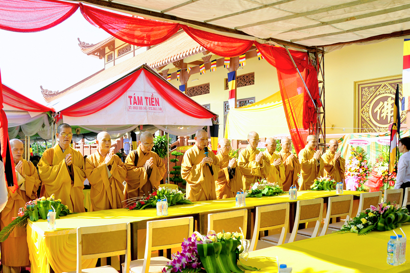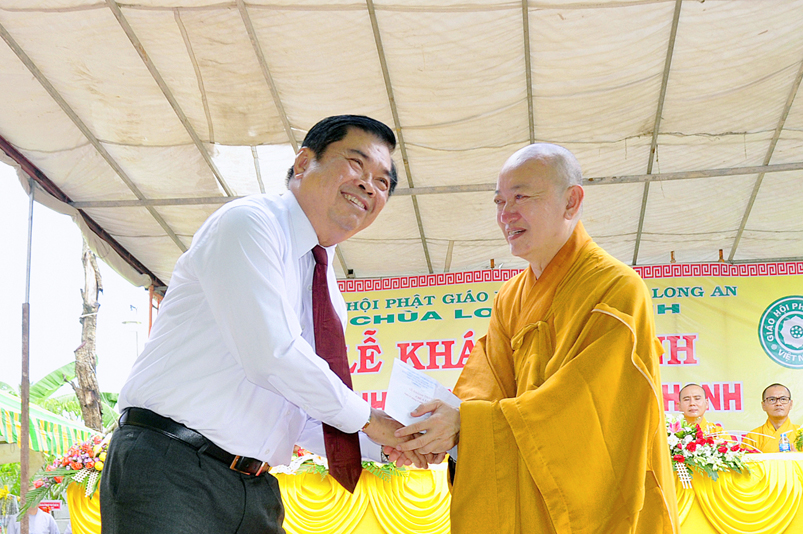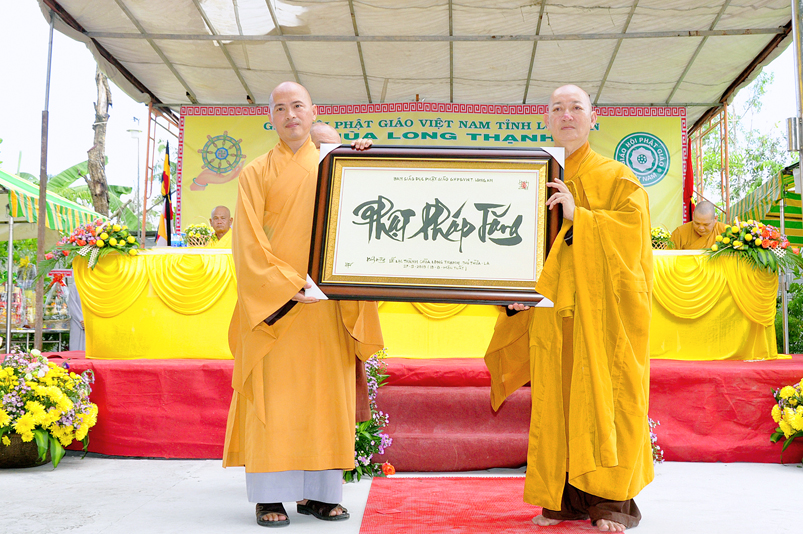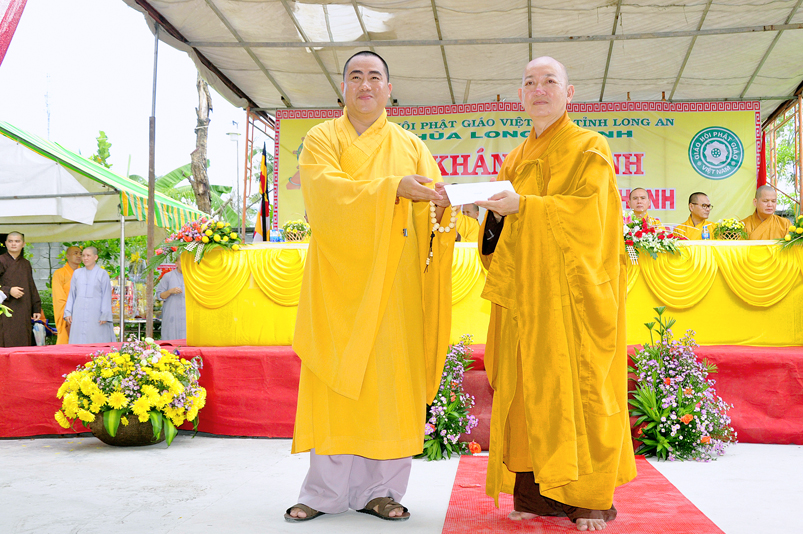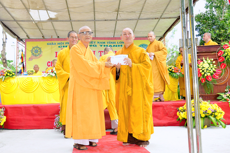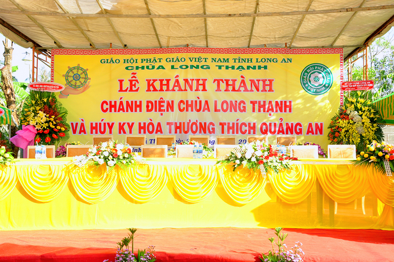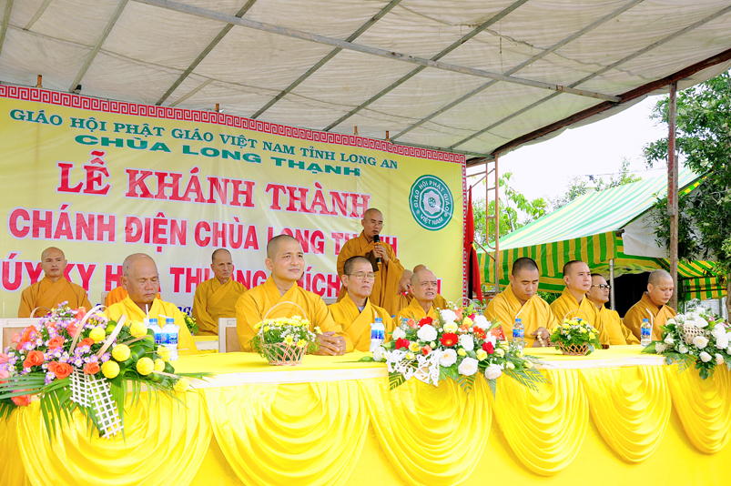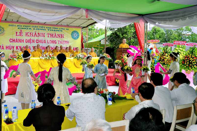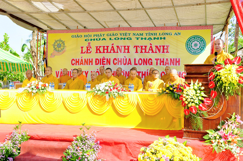 Sau phần nghi thức Lễ nghi truyền thống Phất giáo: Niệm Phật cầu gia hộ,phút mật niệm Chủ tịch nước Trần Đại Quang, giới thiệu thành phần tham dự, dâng hoa… đến phần nội dung buổi lễ. Thượng tọa Quảng Tâm – Phó ban Trị sự GHPGVN tỉnh Long An, trụ trì chùa Long Thạnh, Trưởng ban tổ chức đã báo cáo quá trình hình thành, và phát triển chùa Long Thạnh, tóm lược như sau: