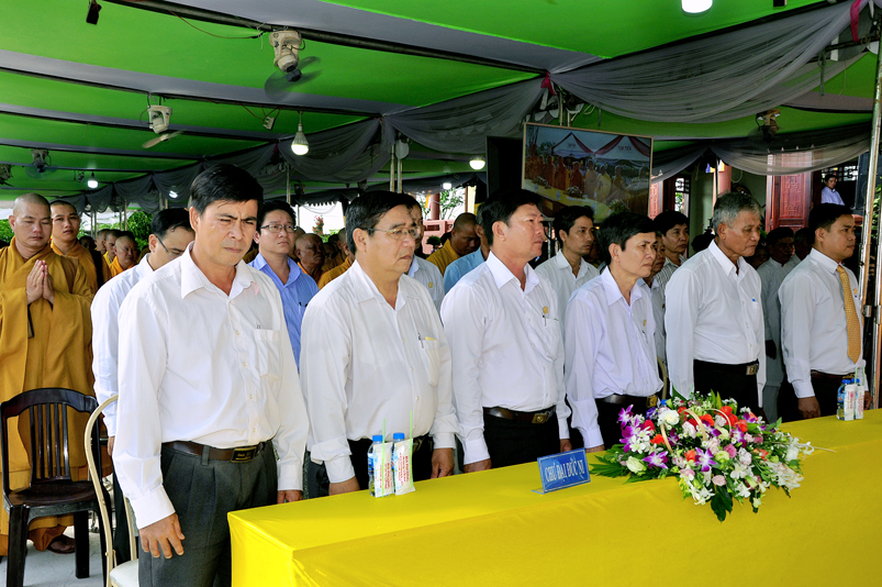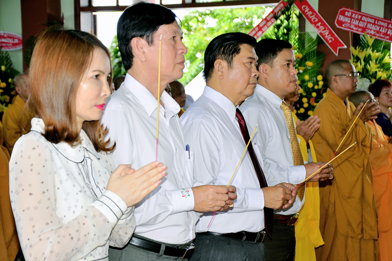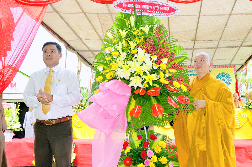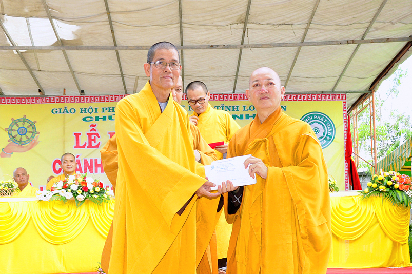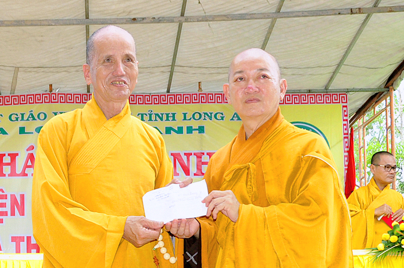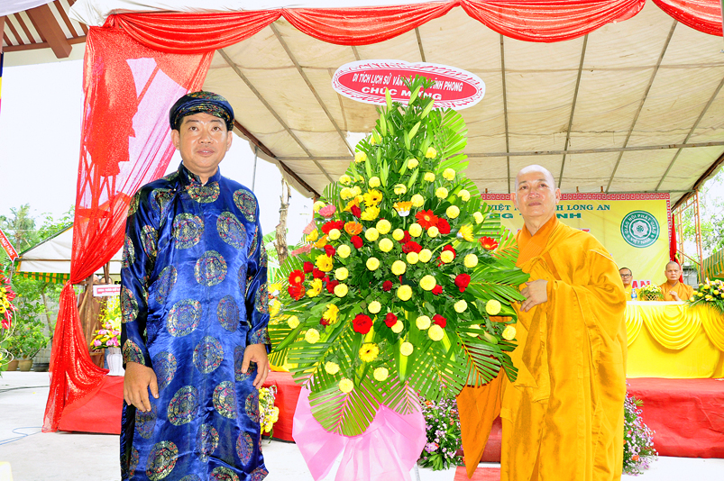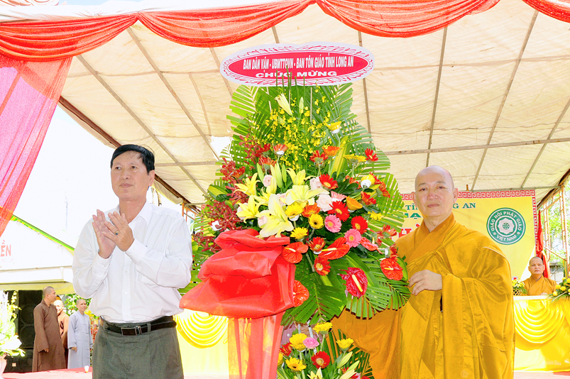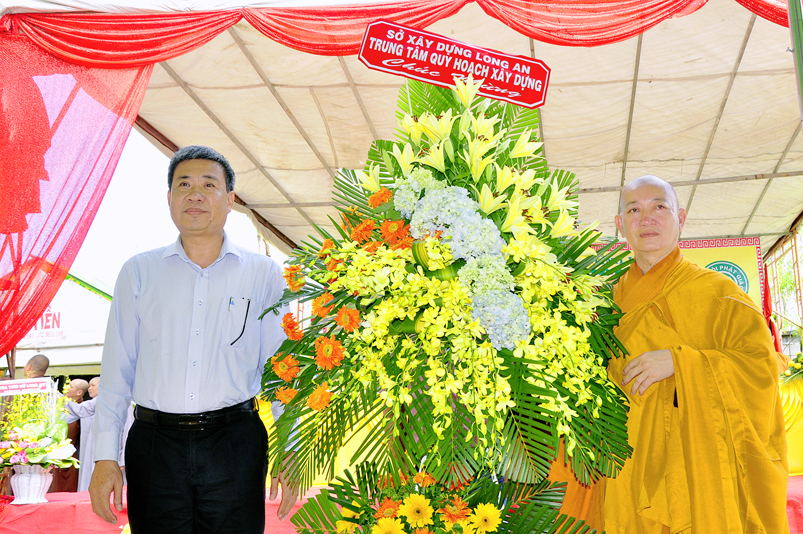Chứng minh buổi lễ có sự hiện diện của HT. Thích Thiện Huệ- Chứng minh Ban trị sự GHPGVN tỉnh Long An; TT. Thích Minh Thọ- Uỷ viên Hội đồng Trị sự trung ương, Phó Ban Trị sự GHPGVN tỉnh Long An; HT. Thích Chơn Đạo- Giáo thọ trường Trung cấp Phật Học tỉnh Long An; HT. Thích Quảng Ý- Trưởng Ban Trị sự GHPGVN liên huyện Tân Thạnh- Kiến Tường- Vĩnh Hưng; HT. Thích Thiện Phúc- Trưởng Ban Trị sự GHPGVN liên huyện Đức Hoà- Đức Huệ; ĐĐ. Thích Lệ Trí- Uỷ viên HĐTSTƯ, Phó Ban trị sự GHPGVN tỉnh Long An; ĐĐ. Thích Lệ Duyên- Chánh thư ký BTS. GHPGVN tỉnh Long An; ĐĐ. Thích Hoá Minh- Trường Ban trị sự GHPGVN huyện Thủ Thừa cùng Chư tôn đức Tăng Ni trong và ngoài tỉnh tham dự.