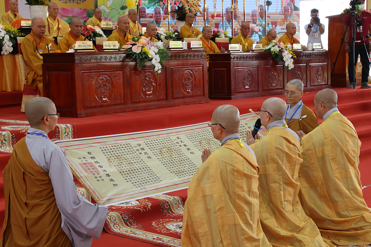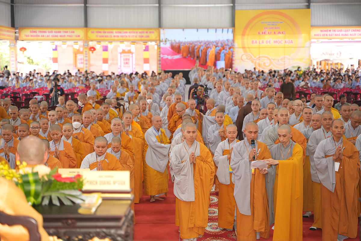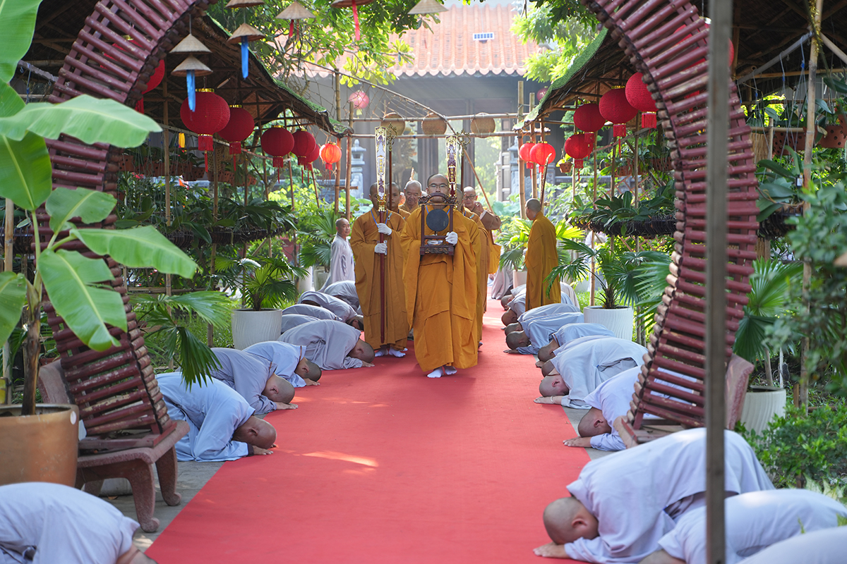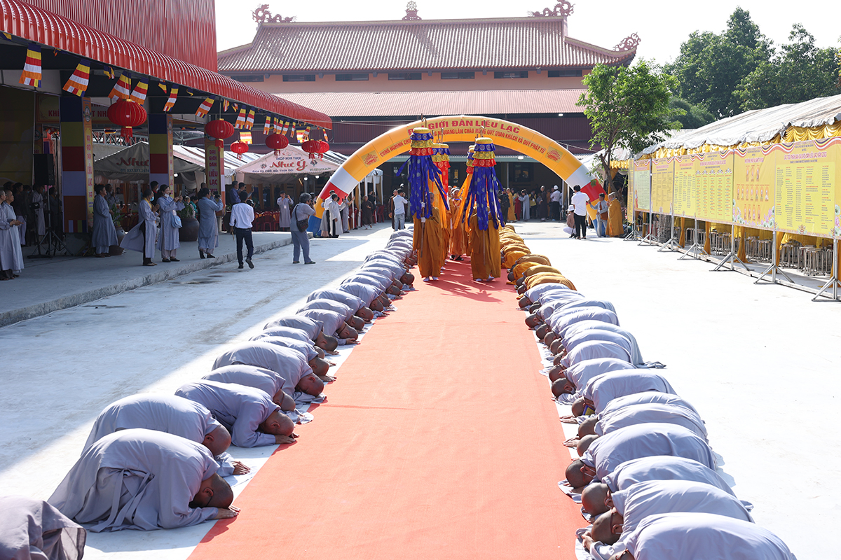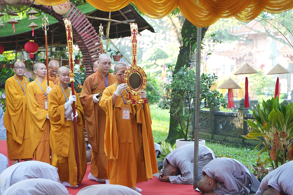 Cung an chức sự phần nghi thức tâm linh thiêng liêng của Đại Giới đàn, thay mặt cho toàn thể chư vị Giới tử TT. Thích Phước Cường cung an chức sự đàn Giới Tỳ kheo và Sa di; NT. Thích Nữ Tắc Sen cung an chức sự đàn Giới Tỳ kheo Ni, Thức xoa ma na và Sa di Ni.