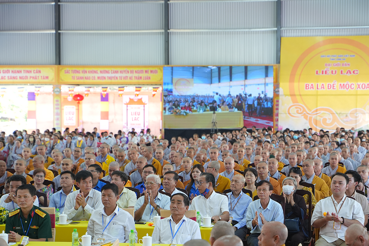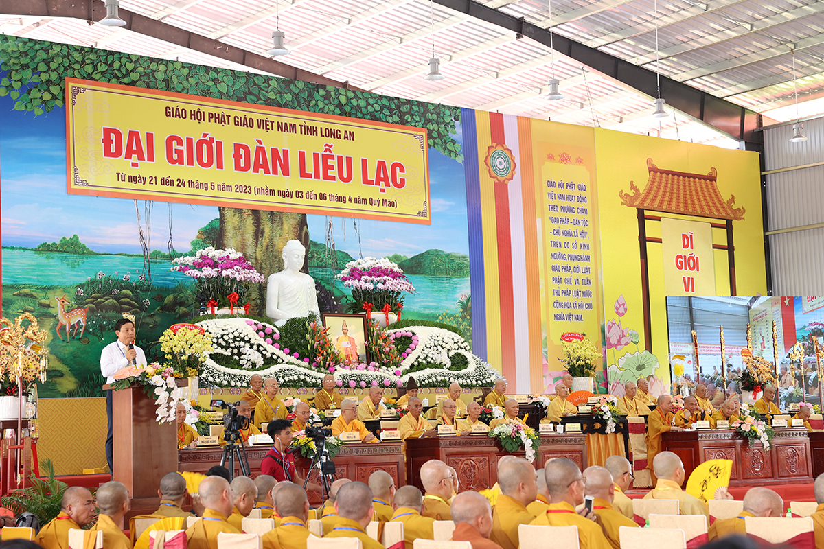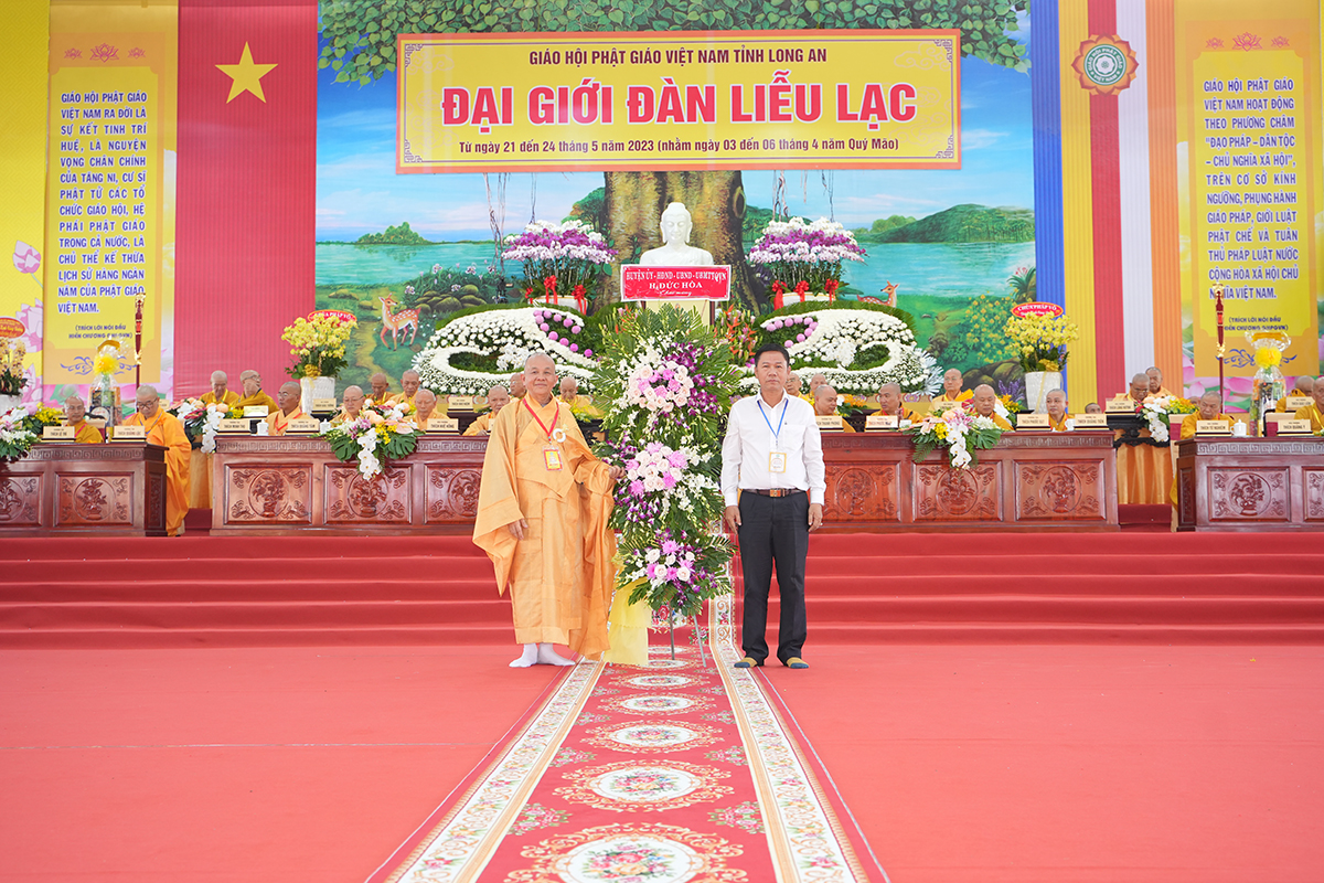 Thay mặt cho lãnh đạo chính quyền các cấp, ông Phạm Tấn Hoà – Phó Chủ tịch UBND tỉnh Long An đã gửi lời chào, lời chúc sức khoẻ đến với chư Tôn đức hiện tiền cùng toàn thể hội chúng. Nhân lời dạy của HT. Thích Minh Thông về sự quan trọng của Giới luật trong sự tồn vong của Phật pháp, cùng lời kinh sách tấn trong bài kinh Giáo giới La hầu la. Ông tin tưởng rằng với sự đoàn kết, tinh thần Lục hoà, cùng sự dẫn dắt của Chư Tôn đức Giới sư các Giới tử sẽ thành tựu giới pháp châu viên.