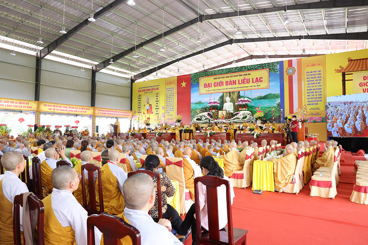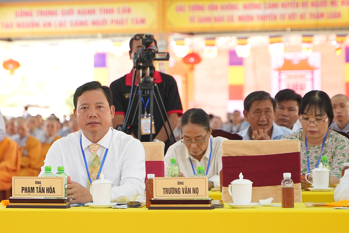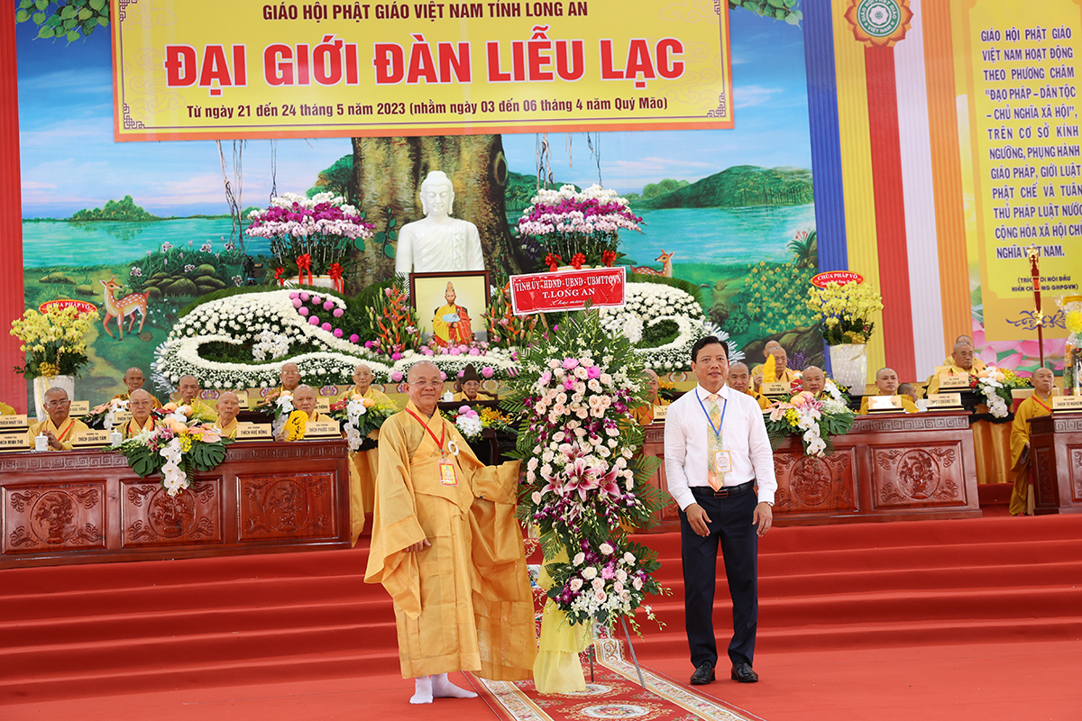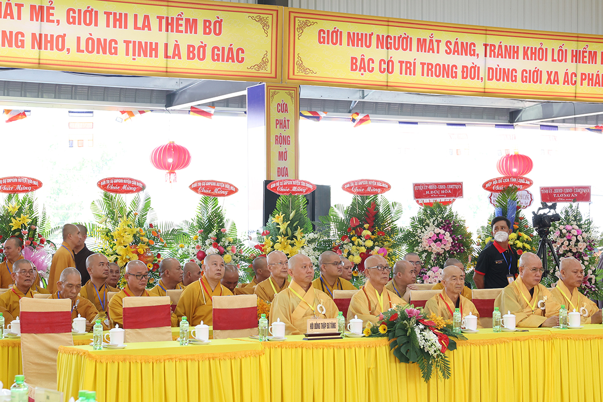 Thay mặt cho lãnh đạo chính quyền các cấp, ông Phạm Tấn Hoà – Phó Chủ tịch UBND tỉnh Long An đã gửi lời chào, lời chúc sức khoẻ đến với chư Tôn đức hiện tiền cùng toàn thể hội chúng. Nhân lời dạy của HT. Thích Minh Thông về sự quan trọng của Giới luật trong sự tồn vong của Phật pháp, cùng lời kinh sách tấn trong bài kinh Giáo giới La hầu la. Ông tin tưởng rằng với sự đoàn kết, tinh thần Lục hoà, cùng sự dẫn dắt của Chư Tôn đức Giới sư các Giới tử sẽ thành tựu giới pháp châu viên.