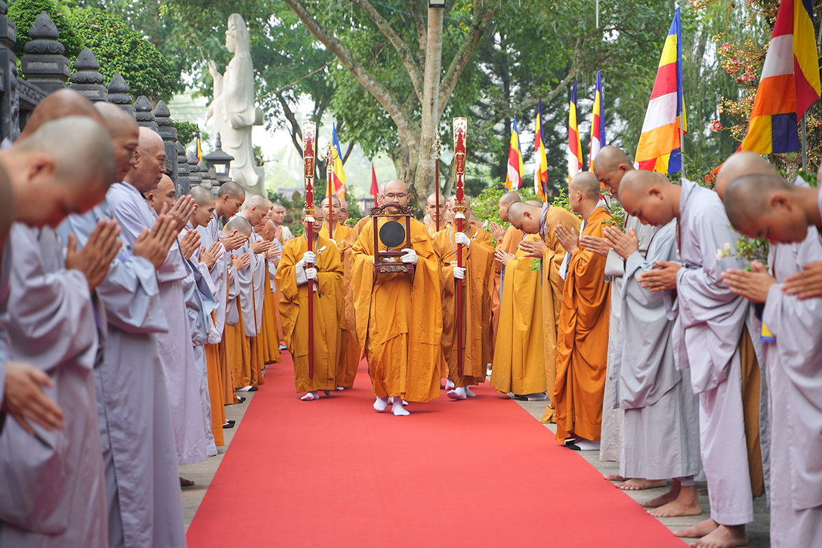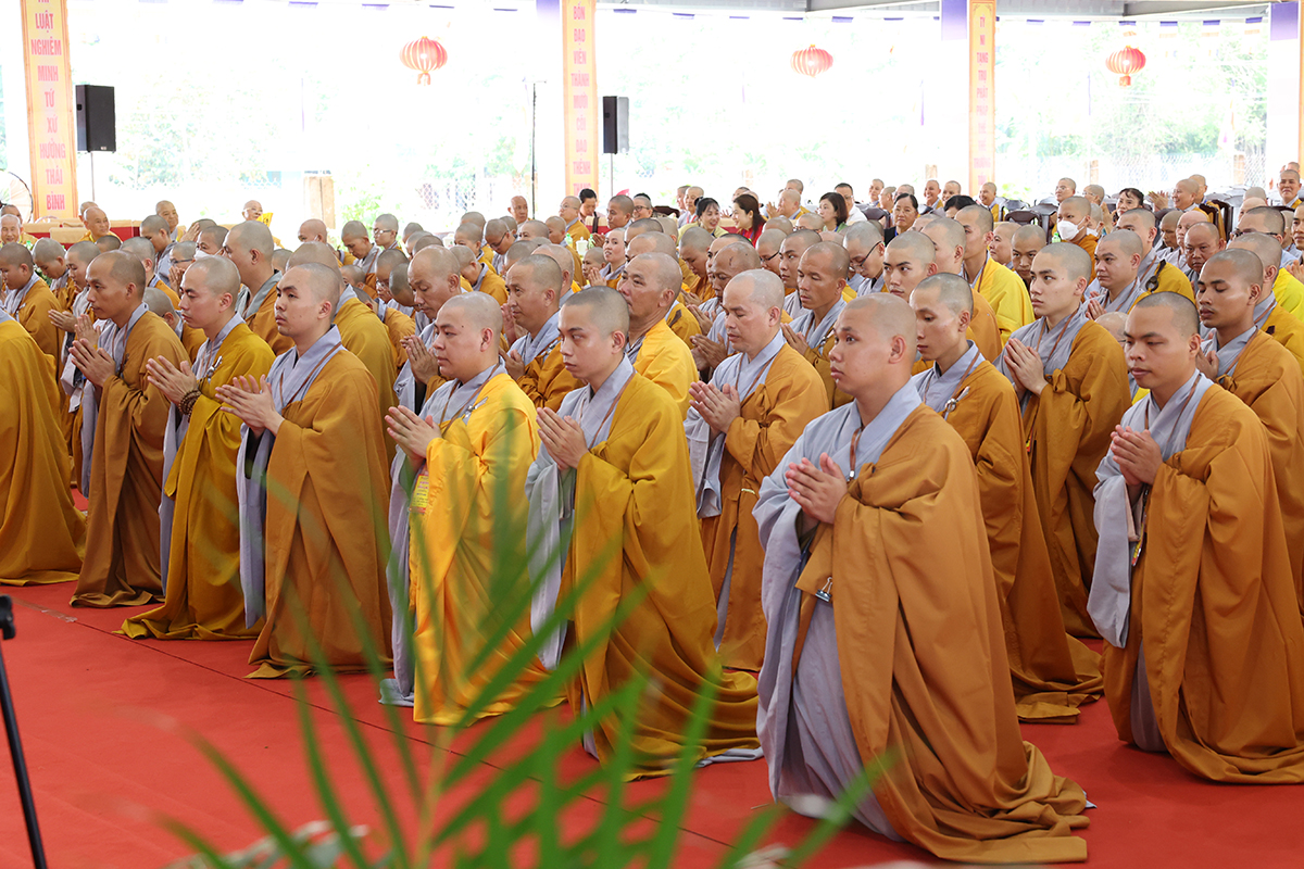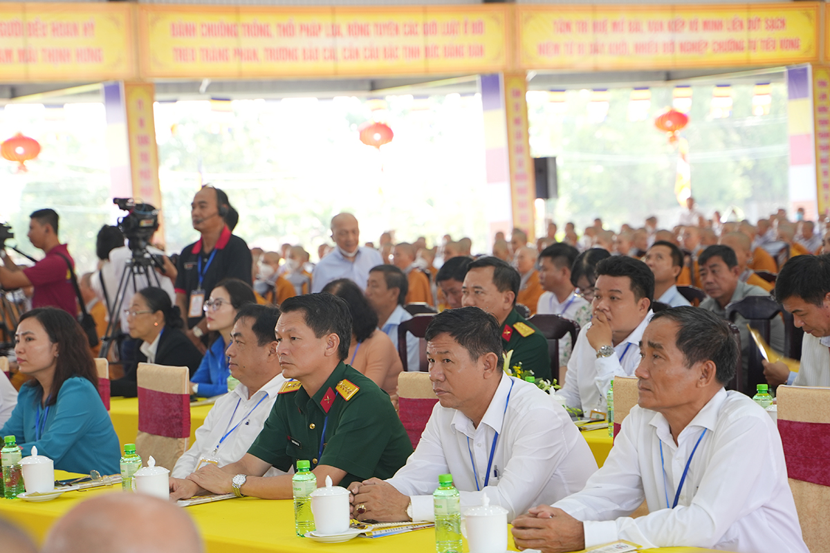 Buổi lễ được cung đón sự chứng minh của Trưởng lão HT. Thích Đức Nghiệp – Phó Pháp chủ, Trưởng Ban Giám luật HĐCM, HT. Thích Giác Tường, HT. Thích Như Niệm – Phó Thư ký HĐCM, HT. Thích Thiện Nhơn – Chủ tịch HĐTS, Trưởng Ban Tăng sự TƯ; HT. Thích Thiện Pháp – Phó Chủ tịch TT HĐTS, Phó Ban Tăng sự TƯ, HT. Thích Như Tín, HT. Thích Minh Thông, HT. Thích Minh Hùng, HT. Thích Lãng Huỳnh, HT. Thích Thiện Huệ, cùng sự hiện diện của chư Tôn Giáo phẩm, chư Tôn đức Tăng – Ni trên địa bàn tỉnh và quý Tôn đức các tỉnh thành đồng về tham dự.