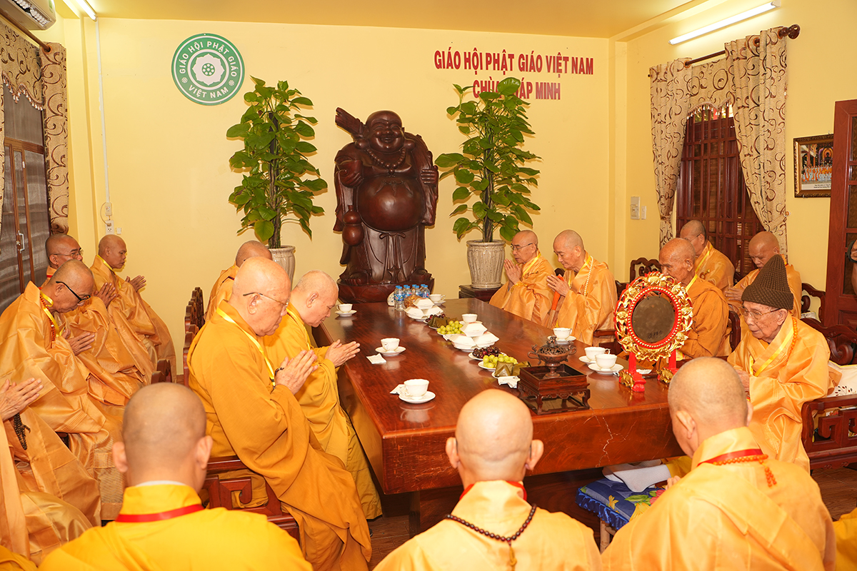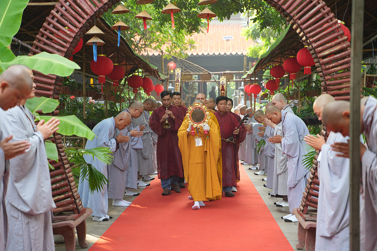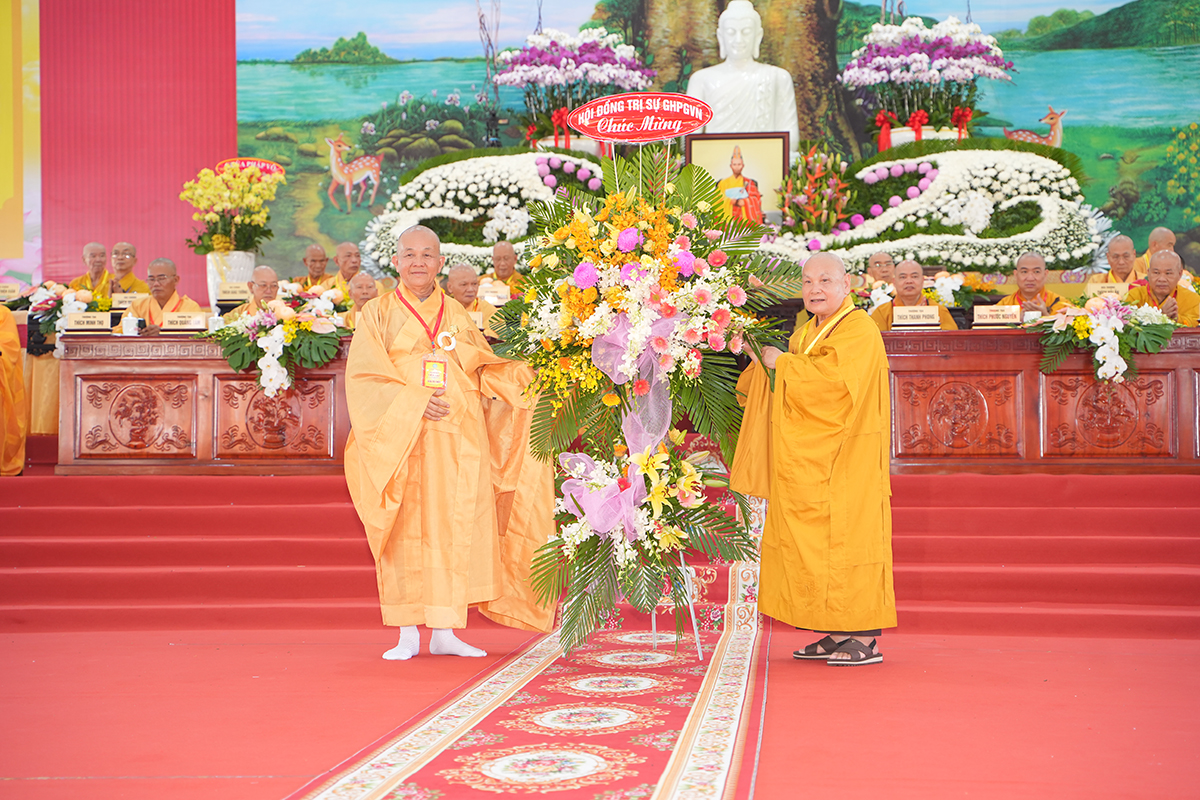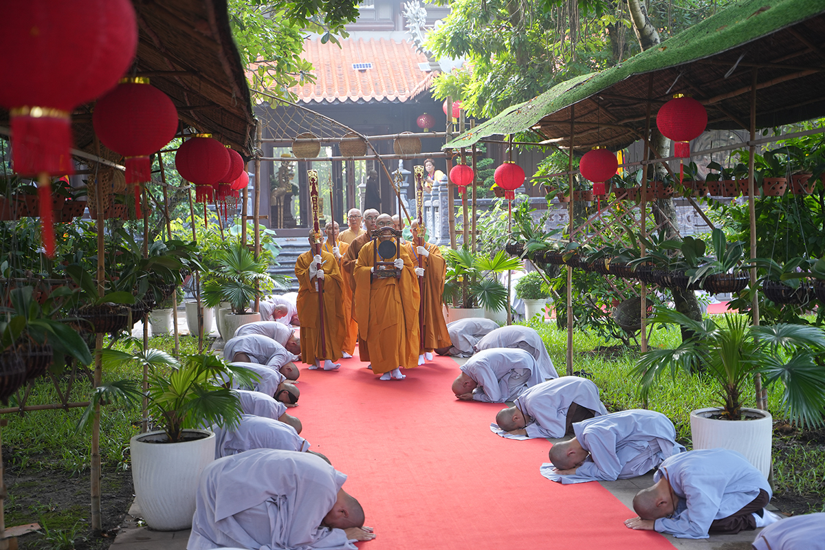 Buổi lễ được cung đón sự chứng minh của Trưởng lão HT. Thích Đức Nghiệp – Phó Pháp chủ, Trưởng Ban Giám luật HĐCM, HT. Thích Giác Tường, HT. Thích Như Niệm – Phó Thư ký HĐCM, HT. Thích Thiện Nhơn – Chủ tịch HĐTS, Trưởng Ban Tăng sự TƯ; HT. Thích Thiện Pháp – Phó Chủ tịch TT HĐTS, Phó Ban Tăng sự TƯ, HT. Thích Như Tín, HT. Thích Minh Thông, HT. Thích Minh Hùng, HT. Thích Lãng Huỳnh, HT. Thích Thiện Huệ, cùng sự hiện diện của chư Tôn Giáo phẩm, chư Tôn đức Tăng – Ni trên địa bàn tỉnh và quý Tôn đức các tỉnh thành đồng về tham dự.