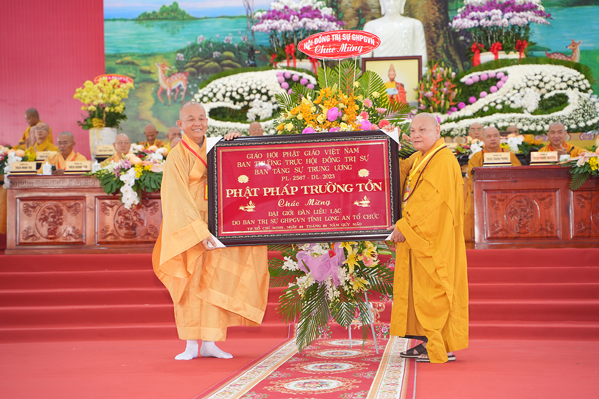 Đại Giới đàn Liễu Lạc đã nhận được những lẵng hoa, những phần quà và khánh vàng cao quý từ chư Tôn đức Giáo phẩm, chư Tôn đức các Ban ngành TƯ và chư Tôn đức các huyện thị trong tỉnh Long An và các tỉnh thành đã gửi về chúc mừng cùng những lời chúc tốt đẹp nhất.