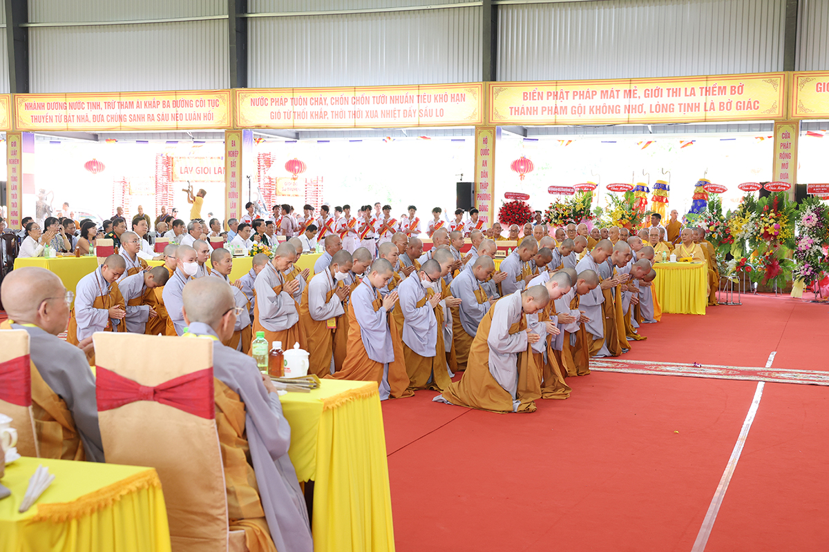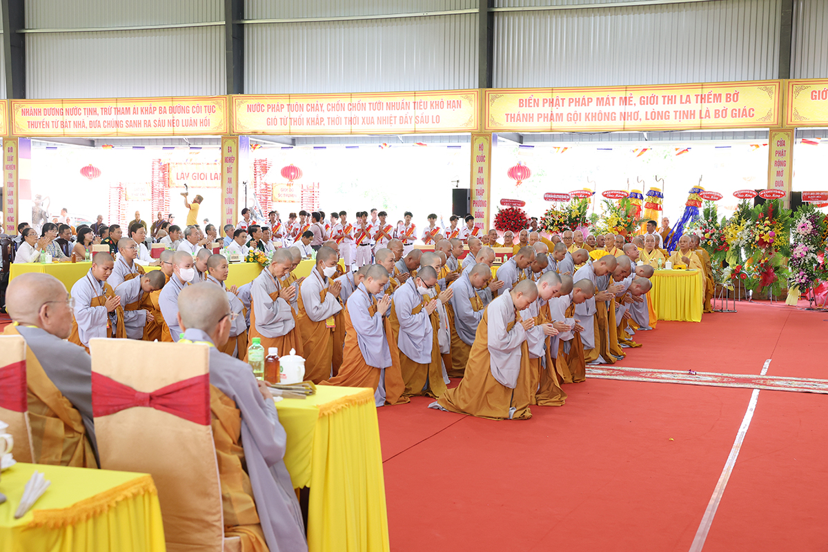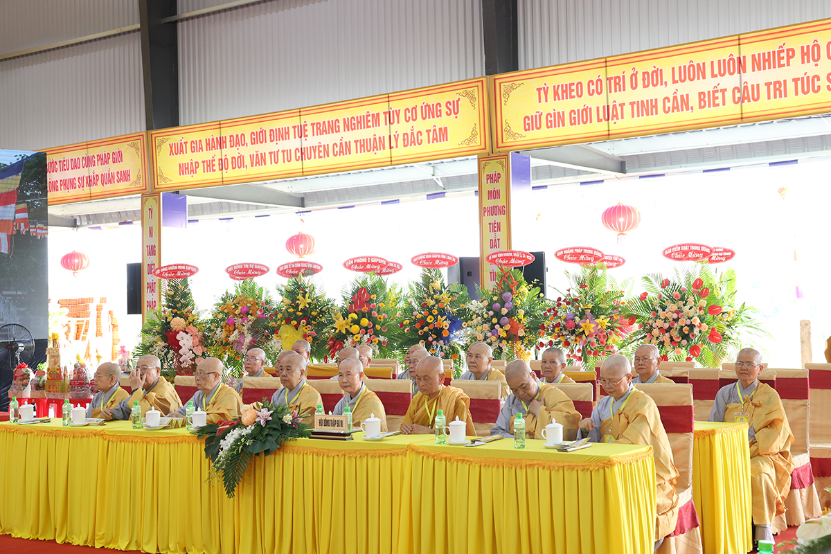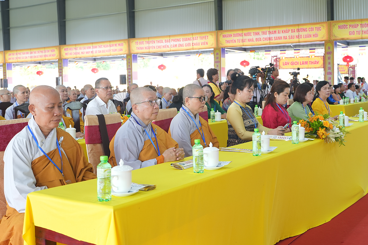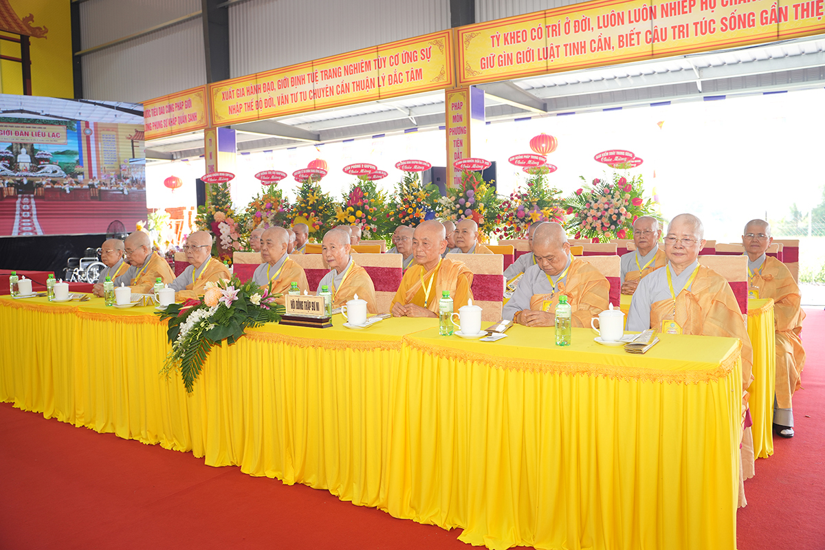 Quang lâm chứng minh, tham dự với sự hiện diện của chư tôn giáo phẩm Trưởng lão, chư tôn đức lãnh đạo Ban Trị sự, Ban Kiến đàn, Tăng Ni Phật giáo trong và ngoài tỉnh, đại diện các cấp chính quyền tỉnh và gần 350 giới tử tham dự.