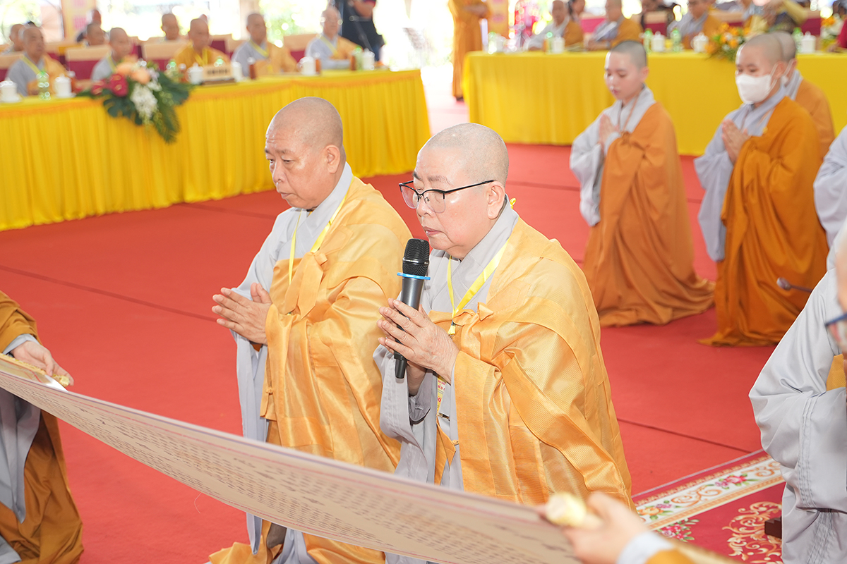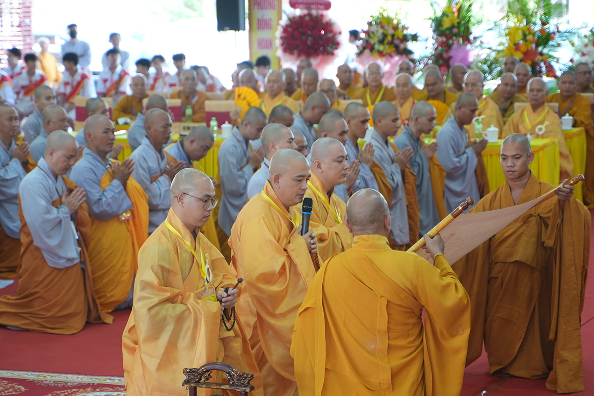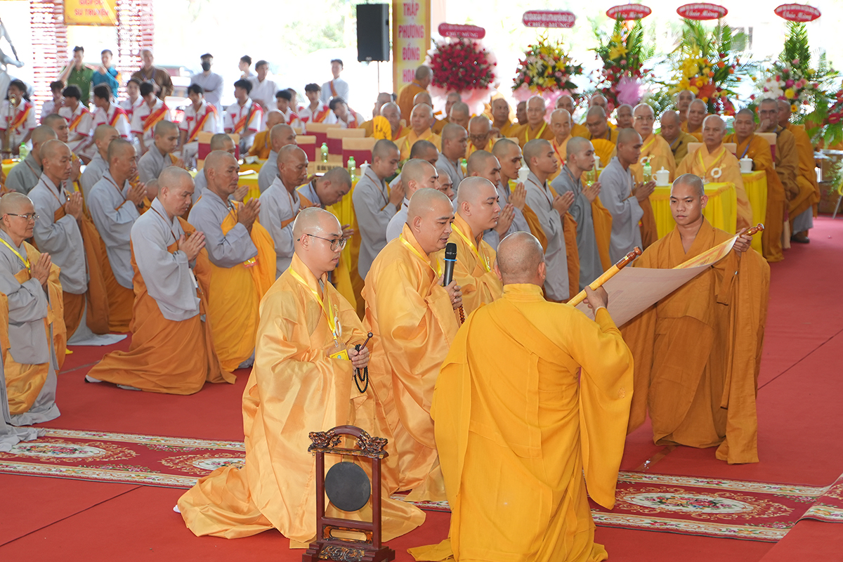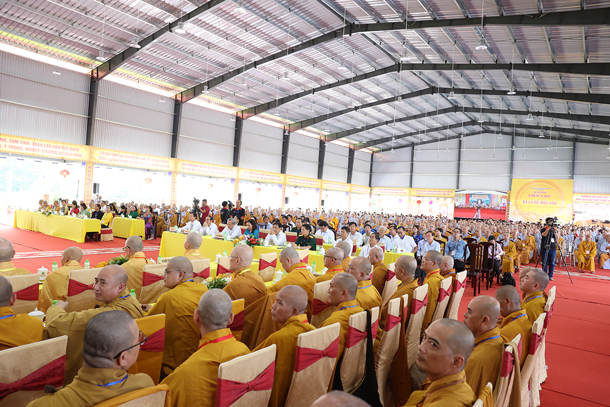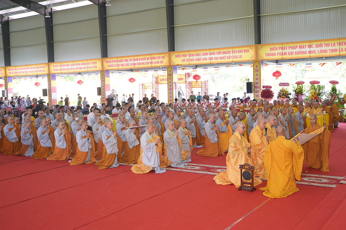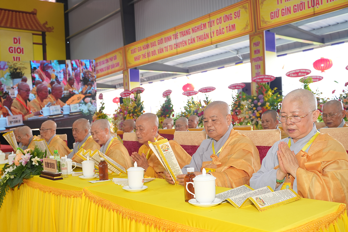 Quang lâm chứng minh, tham dự với sự hiện diện của chư tôn giáo phẩm Trưởng lão, chư tôn đức lãnh đạo Ban Trị sự, Ban Kiến đàn, Tăng Ni Phật giáo trong và ngoài tỉnh, đại diện các cấp chính quyền tỉnh và gần 350 giới tử tham dự.