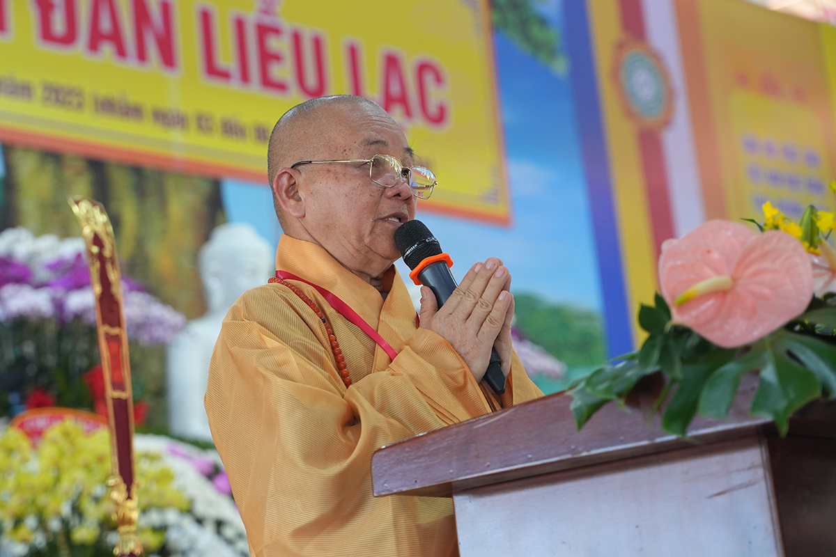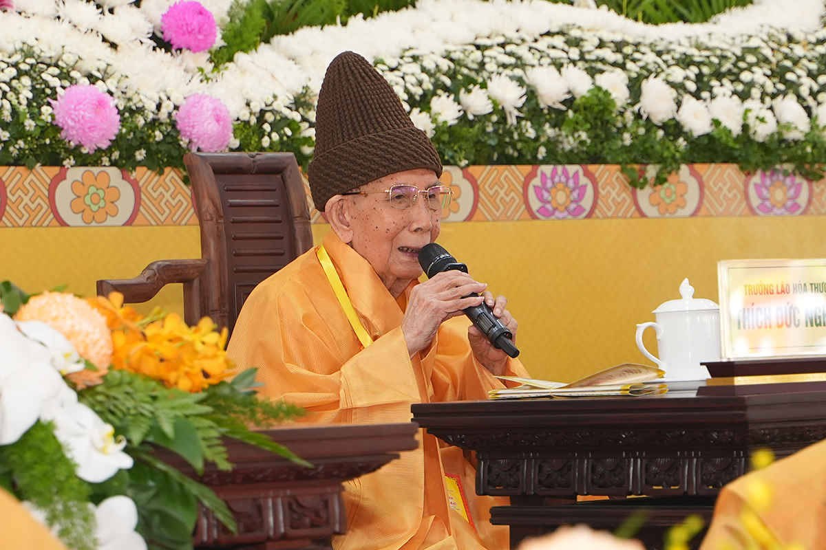 Ban lời đạo từ cho buổi lễ, Trưởng lão HT. Thích Đức Nghiệp đã gửi những lời chào, lời chúc sức khoẻ đến với chư Tôn đức, quý quan khách quý và toàn thể đại chúng. HT bày tỏ niềm hoan hỷ của mình khi nhìn thấy những tấm lòng vàng chúng tay góp sức vì sự nghiệp đào tạo Tăng tài, phát triển Phật giáo, lợi đạo ích đời cho dân tộc, đất nước ngày càng tốt đẹp, phồn vinh. Cuối lời, HT chúc nguyện những điều an lành nhất đến với mọi người.