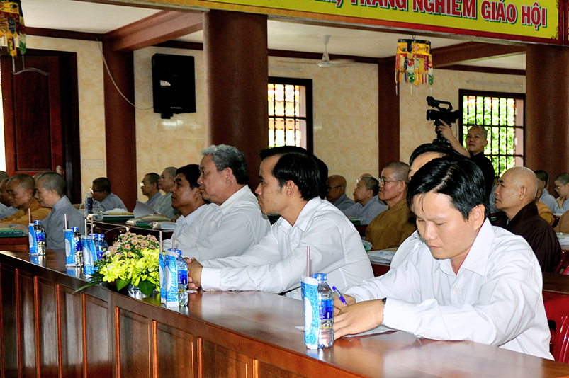 Chứng minh buổi lễ, Ban tổ chức được cung đón: Đức Hòa thượngThích Thiện Nhơn – Chủ tịch Hội đồng Trị sự GHPGVN; Hòa thượng Thích Thiện Pháp – Phó Chủ tịch Thường trực Hội đồng Trị sự GHPGVN, Trưởng ban Tăng sự Trung ương; Hòa thượng Thích Thiện Đức – Ủy viên Thường trực Hội đồng Trị sự, Trưởng ban Kiểm soát Trung ương GHPGVN; Hòa thượng Thích Thiện Huệ – Chứng minh BTS GHPGVN; Hòa thượng Thích Huệ Hồng – Chứng minh BTS. GHPGVN; Hòa thượng Thích Minh Thiện – Ủy viên Hội đồng trị sự trung ương, Phó trưởng ban Hoằng pháp Trung ương, Trưởng Ban trị sự. GHPGVN tỉnh Long An, Trưởng ban tổ chức Khóa Tập Huấn Hành Chánh Giáo Hội; cùng Chư Tôn đức Thường trực Ban trị sự tỉnh, Ban trị sự huyện thị, thành phố, Chư Tôn đức Tăng Ni trong tỉnh.