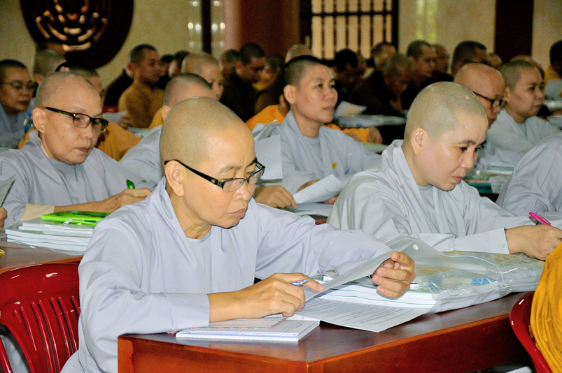 Tiếp đến, Thượng tọa Thích Thiện Tâm – Phó trưởng ban thường trực Ban Trị sự GHPGVN tỉnh Long An, Phó ban tổ chức đã báo cáo quá trình chuẩn bị, thành phần nhân sự, thành phần ban Giảng huấn, nội dung học tập v.v…