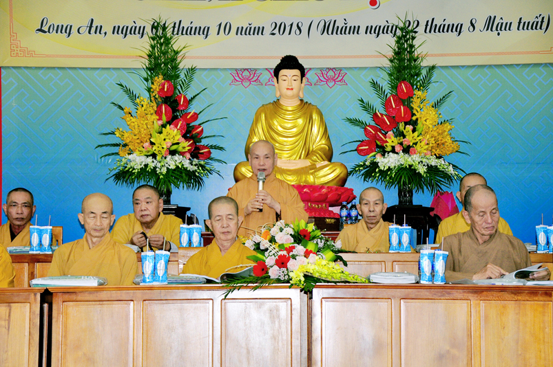 Thật vậy, đối với GHPGVN nhiệm kỳ mới năm 2017-2022 đã trãi qua thời gian một năm, nhưng đã thể hiện tinh thần hòa hợp – đoàn kết và quyết tâm của toàn thể chư tôn đức Tăng Ni Phật giáo đồ của tỉnh Long An, được thể hiện qua các công tác Phật sự năm 2018 đã đạt được nhiều thành quả tốt đẹp. Các ban chuyên môn trực thuộc ban Trị sự GHPGVN tỉnh Long An, huyện thị thành phố đã tổ chức thành công đại lễ Phật đản PL 2562, nhất là đã tổ chức thành công đại giới đàn Hoằng Đức, Tăng Ni trong tỉnh cũng đã góp phần tích cực trang nghiêm GHPGVN tỉnh Long An, tổ chức thành công khóa An cư Kiết hạ PL 2562 với 9 địa điểm An Cư tập trung, giúp cho hành giả An Cư thúc liễm thân tâm trao dồi giới định tuệ.