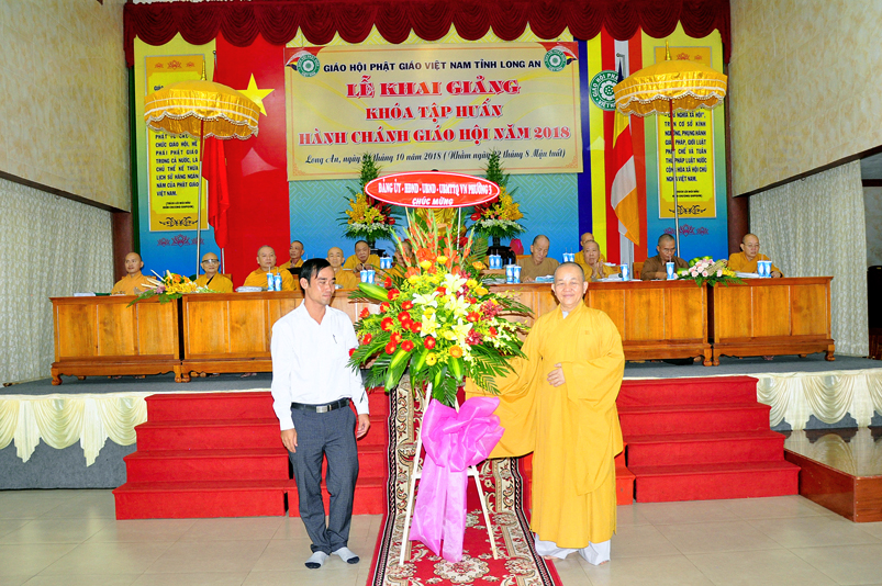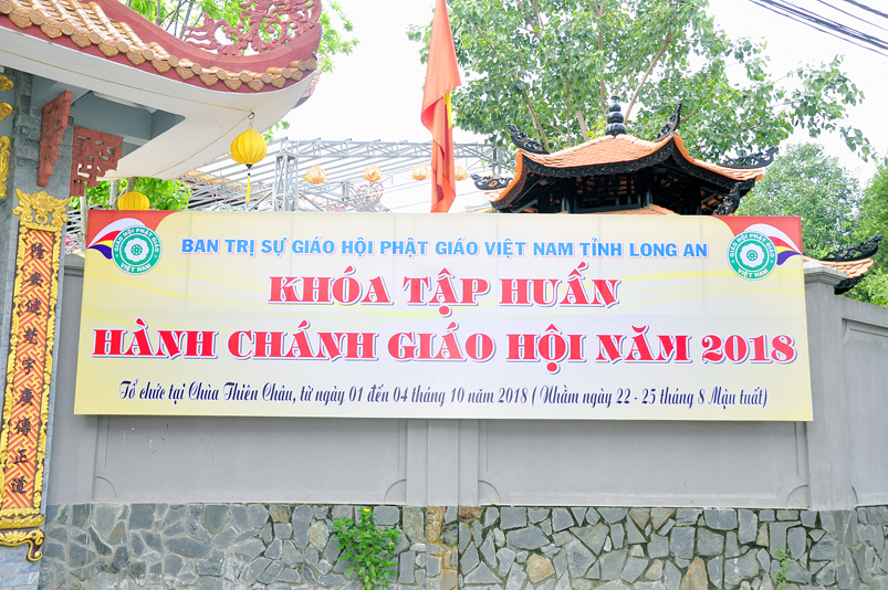 Sáng ngày 1/ 10/ 2018 (22/ 8/ Mậu Tuất), tại chùa Thiên Châu, Văn phòng Ban Trị Sự Giáo Hội Phật Giáo Việt Nam tỉnh Long An (BTS GHPGVN), đường Huỳnh Văn Nhứt, phường 3, thành phố Tân An, tỉnh Long An, trang nghiêm tổ chức lễ Khai giảng khóa tập huấn Hành chánh Giáo hội.