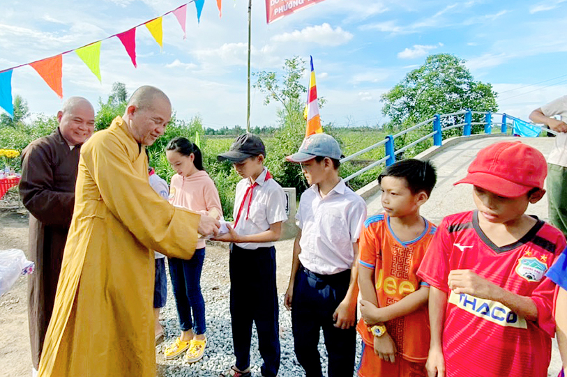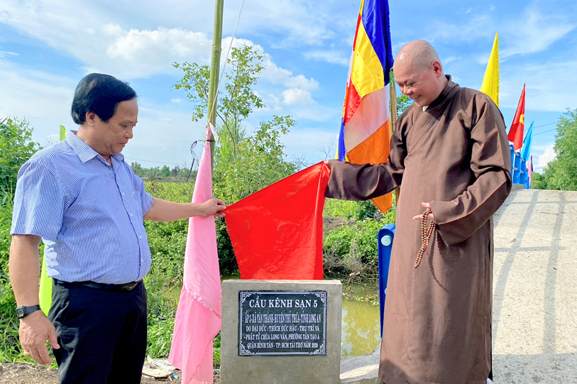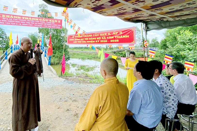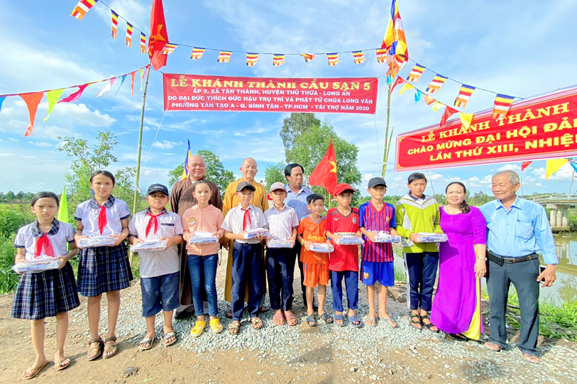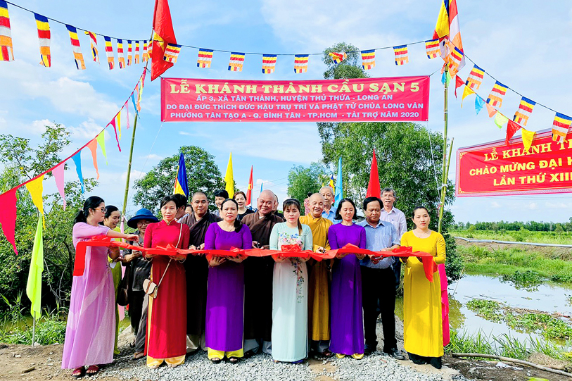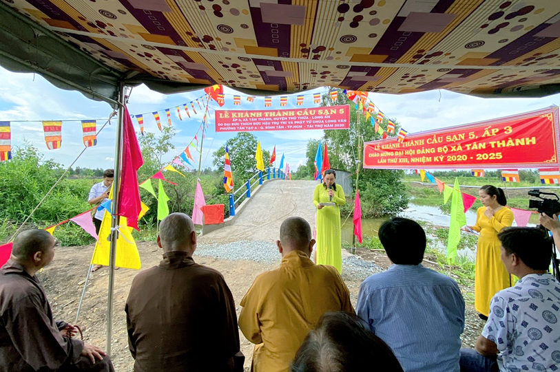 Nhằm giúp bà con nhân dân thuộc ấp 3, xã Tân Thạnh, huyện Thủ Thừa, tỉnh Long An thuận tiện giao thông phát triển kinh tế, đặc biệt là con em an toàn đến trường, sáng ngày 31-5-2020 ( nhằm ngày 9-4-Canh Tý) Phật giáo Long An kết hợp với chính quyền sở tại tổ chức khánh thành cầu Sạn 5 cho bà con địa phương.