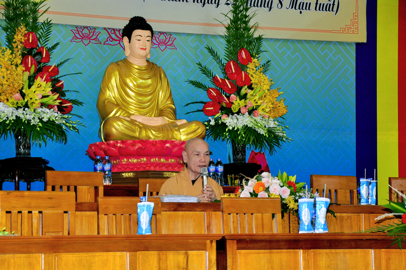 Sau giờ khai mạc, Đức Hòa thượngThích Thiện Nhơn – Chủ tịch Hội đồng Trị sự GHPGVN dành cho các học viên thời pháp thoại với chủ đề “ Tiến Trình Phát Triển Bền Vưng Của Giáo Hội Phật Giáo Việt Nam” từ 09g30 đến 10g30.