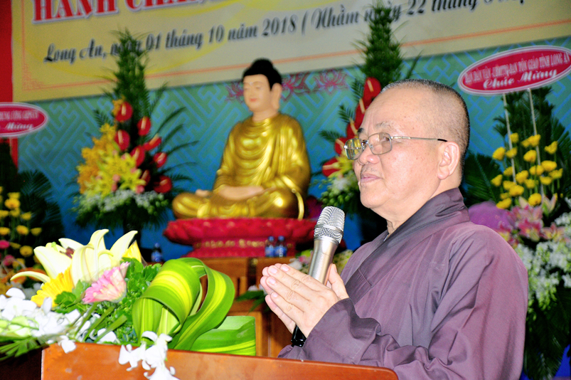Mở đầu buổi giảng, Hòa thượng Thích Minh Thiện – Ủy viên Hội đồng trị sự trung ương, Phó trưởng ban Hoằng pháp Trung ương, Trưởng Ban Trị sự GHPGVN tỉnh Long An, Trưởng ban tổ chức Khóa Tập Huấn Hành Chánh Giáo Hội đã tán thán công đức của Hòa thượng Chủ tịch để Đại chúng liễu tri và hoan hỷ.