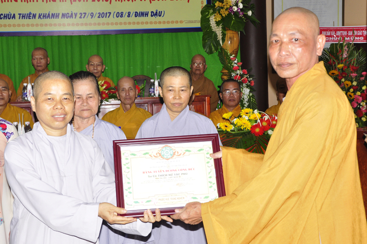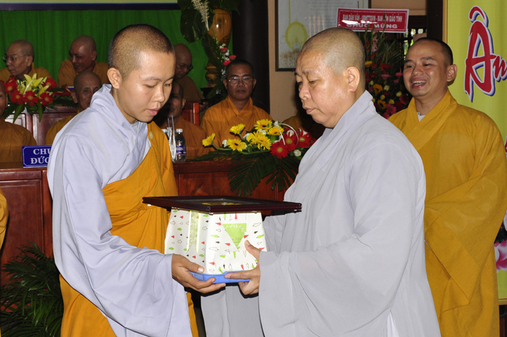Về phía Ni sinh có 4 phần thưởng xuất sắc và 1 phần thưởng hạnh kiểm tốt, như: Ns.Tâm Nhã (hạng nhất), Chơn Huyền (hạng nhì), Tịnh Hiếu (hạng 3), Trung Thiện (hạng 4) và Ns. Huệ Nguyệt, do NT. Tuệ Đăng và NS. Diệu Phước trao tặng.