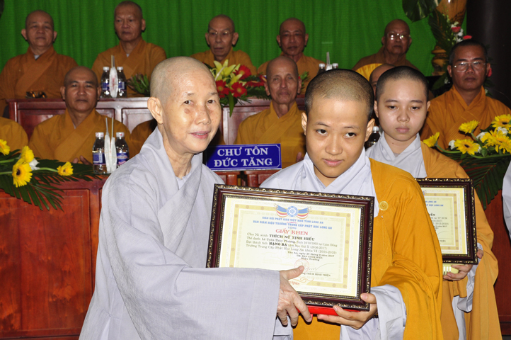 Vinh danh và khích lệ các Tăng Ni sinh học tập tốt, Ban Giám hiệu đã dành 6 phần thưởng xuất sắc và hạnh kiểm cho các Tăng sinh tại cơ sở 1 như: Ts.Tâm Thành (hạng nhất), Ts. Nguyên Phát (hạng nhì), các hạng tiếp theo là: Bửu Minh, Thiện Quang, Đức Chơn, Thiện Hưng, do HT. Hiệu trưởng Thích Minh Thiện và TT. Thích Minh Thọ trao tặng.