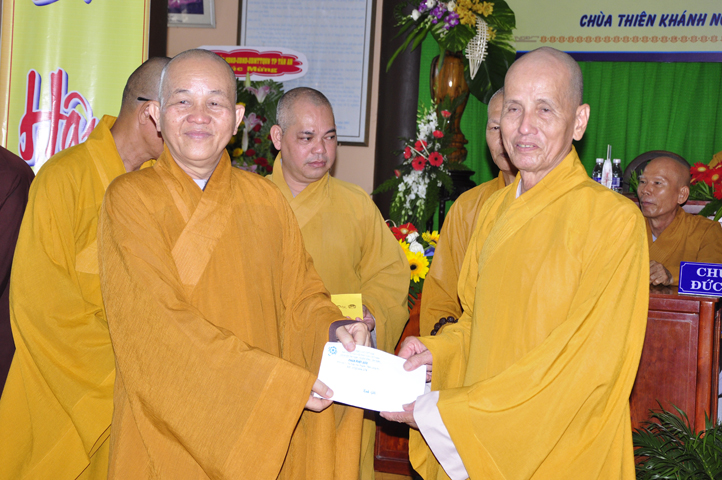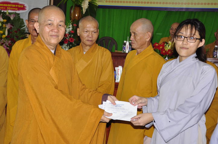 Trong phần này, HT. Thích Phước Toàn tặng 100.000 triệu (90tr dành cho trường – 10tr dành 2 tăng sinh du học Ấn Độ; cùng chư Tôn đức trụ trì các tự viện như: HT. Thích Quảng Ý, TT. Thích Tắc Quảng, ĐĐ. Thích An Trung; NT. Tuệ Đăng, NT. Như Vân -Ni viện Long Hoa; NT. Như Hương; NS.Tắc Hạnh chùa Hòa Bình – Cần Giuộc; và PT. Ngọc Bích phát tâm cúng dường 60.000 triệu đồng VN.
