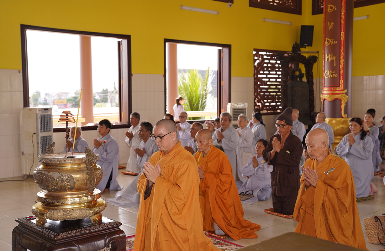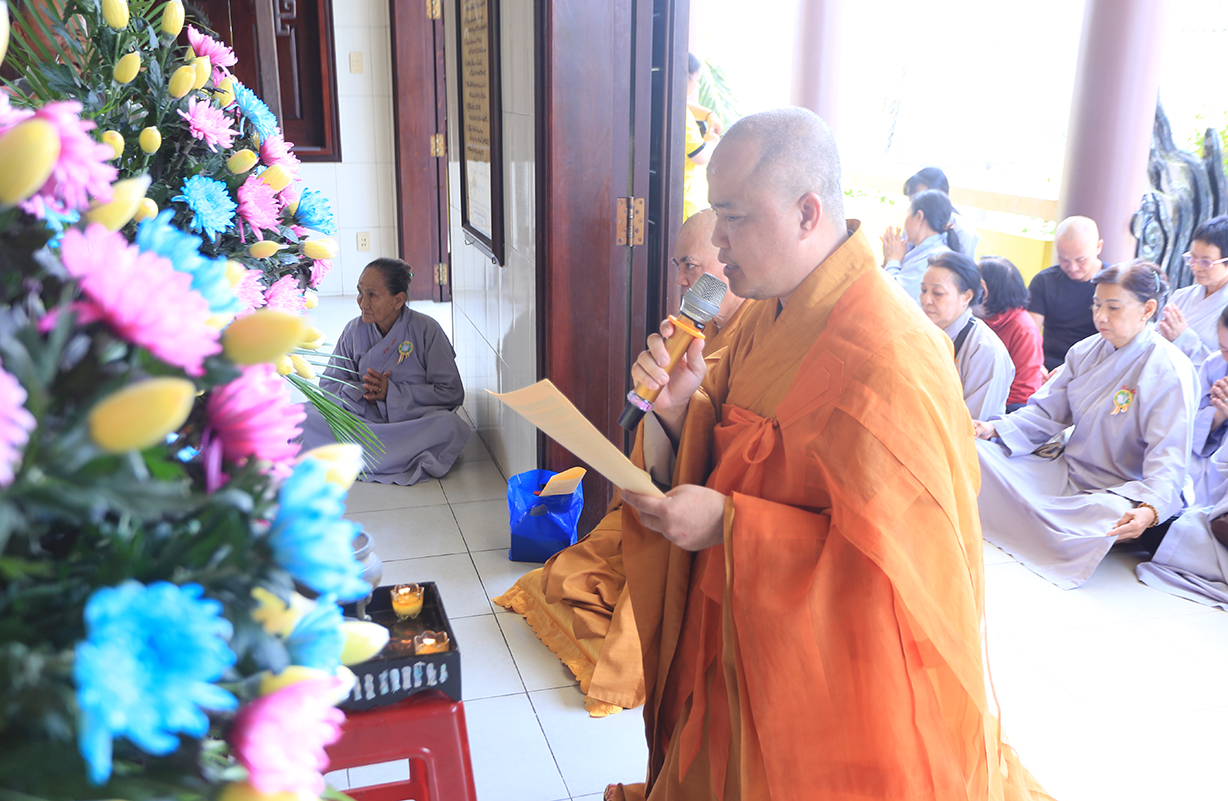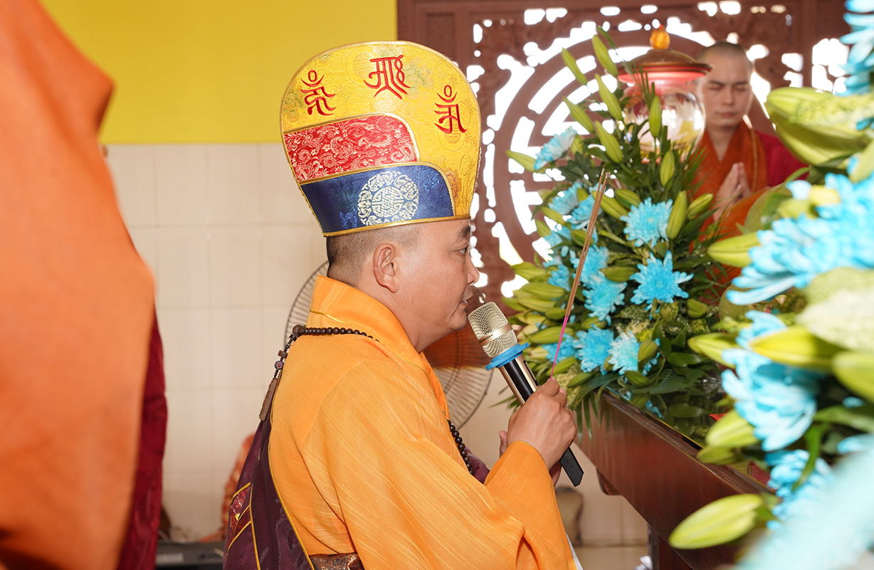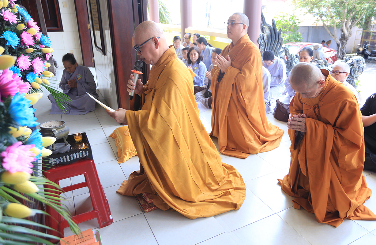 Mở đầu nghi thức buổi lễ, chư Tôn đức Ban Kinh sư do TT Thích An Tịnh, Phó trưởng Ban Nghi lễ PG tỉnh Long An đương vi Sám chủ, thực hiện nghi thức Phổ niệm cúng dường chư Phật, cung tiến Giác linh Cố Thượng Tọa.
