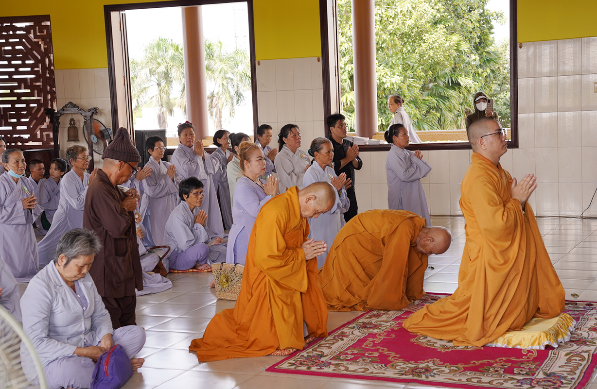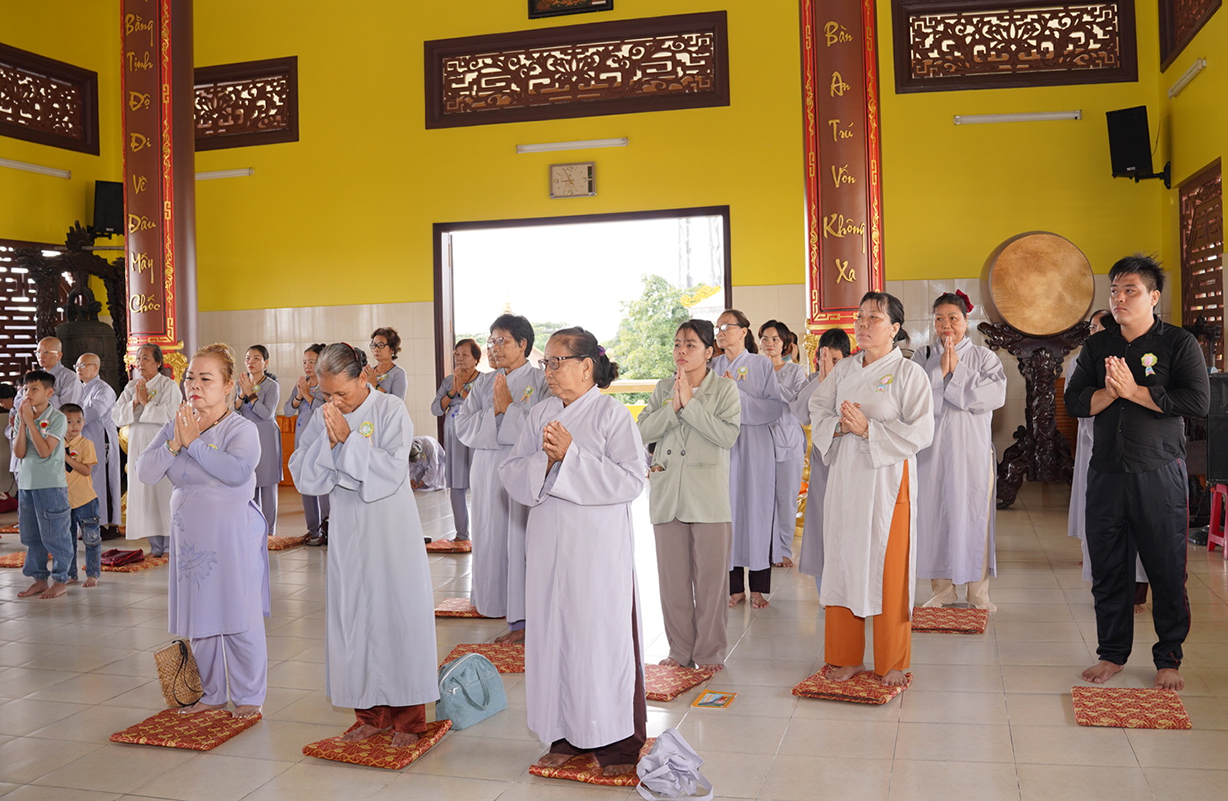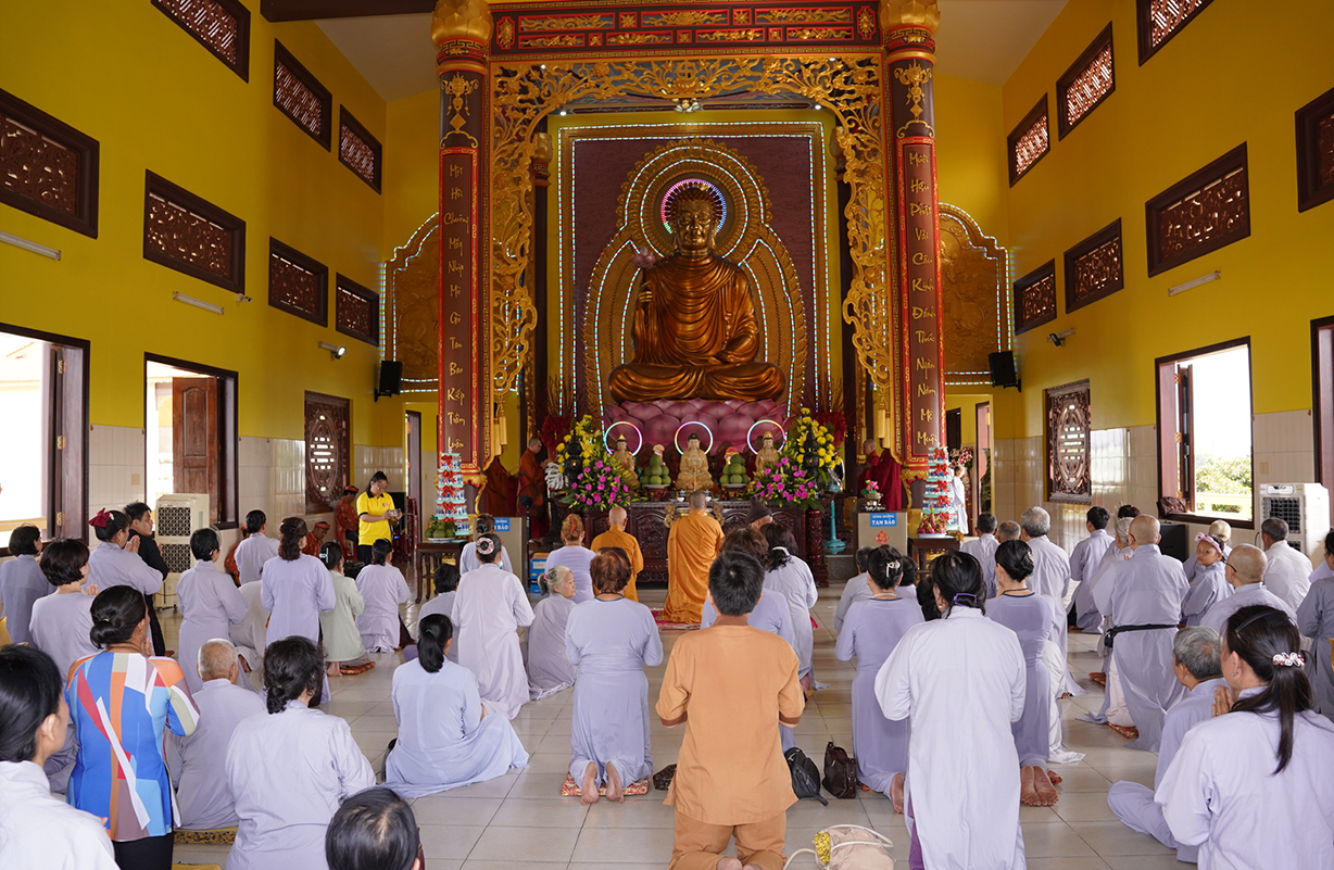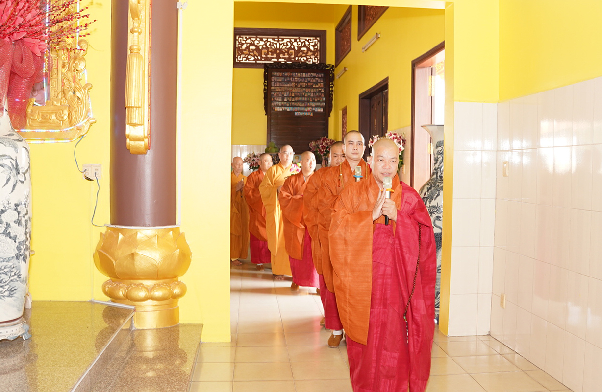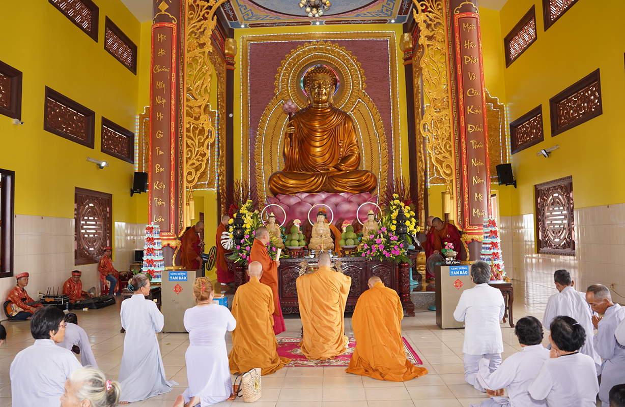 Mở đầu nghi thức buổi lễ, chư Tôn đức Ban Kinh sư do TT Thích An Tịnh, Phó trưởng Ban Nghi lễ PG tỉnh Long An đương vi Sám chủ, thực hiện nghi thức Phổ niệm cúng dường chư Phật, cung tiến Giác linh Cố Thượng Tọa.