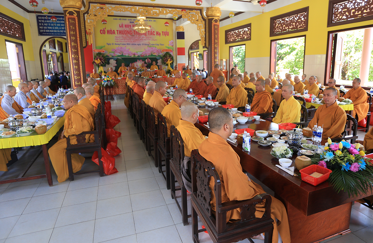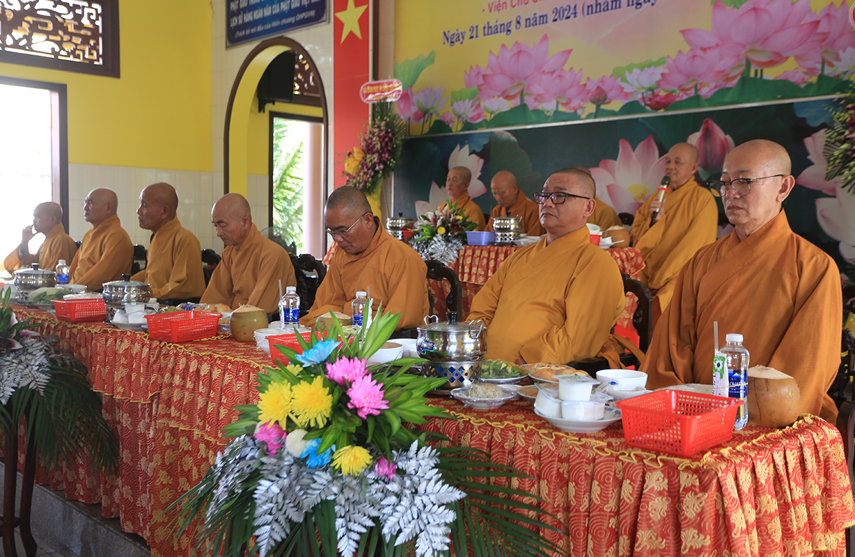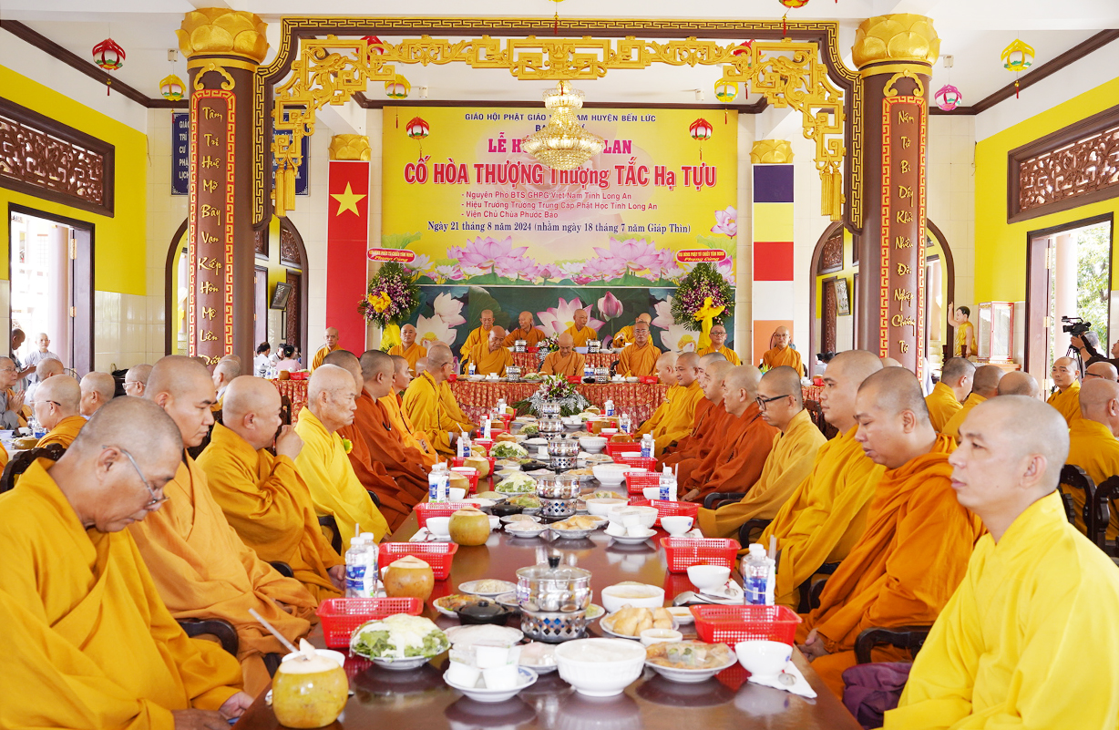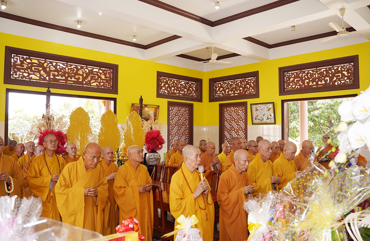 Với thâm tình Pháp lữ, nghĩa Linh sơn, môn nhân pháp quyến được cung đón chư tôn đức Giáo phẩm tỉnh Long An thân lâm chứng dự: Trưởng lão Hòa thượng Thích Thiện Huệ – Thành viên HĐCM TƯ, Chứng minh BTS GHPGVN tỉnh Long An; HT. Thích Huệ Hồng, HT. Thích Thiện Tài – Đồng Chứng minh BTS GHPGVN tỉnh Long An; HT. Thích Minh Thiện – UV HĐTS, Phó Trưởng Ban Hoằng pháp TƯ, Trưởng BTS GHPGVN tỉnh Long An, chư tôn đức Tăng Ni thường trực Ban Trị sự tỉnh; chư Tôn đức Thường trực huyện, thị trấn, Tp. Tân An, tỉnh Long An; chư Tôn đức Tăng Ni trụ trì các tự viện môn phong Thiên Thai Giáo Quán và địa phương sở tại; cùng hằng trăm Phật tử xa gần về tham dự.