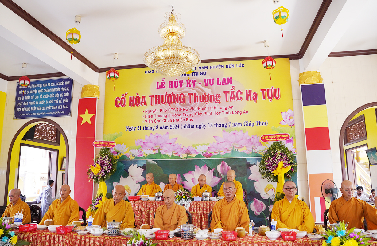 Hôm nay ngày 21 tháng 8 năm 2024 (nhằm ngày 18 / 07/ Giáp Thìn), chùa Phước Bảo xã Thạnh Đức, huyện Bến Lức, tỉnh Long An long trọng tổ chức Lễ Vu Lan báo hiếu tưởng niệm Húy nhựt 18 năm ngày Ân sư thượng Tắc hạ Tựu (2006-2024): Phó trưởng ban Trị sự GHPGVN tỉnh Long An, Hiệu trưởng Trường Trung cấp Phật học tỉnh Long An, Trụ trì chùa Phước Bảo.