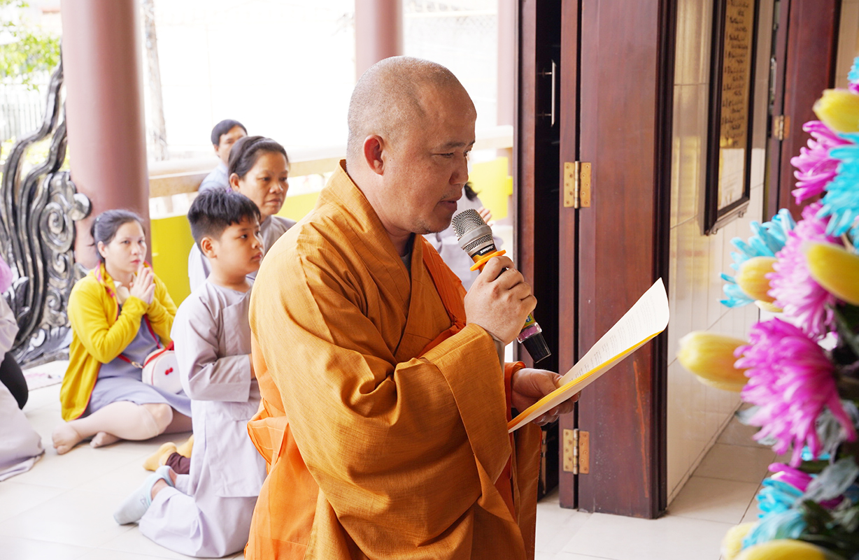 Tiếp đó, chư Tôn đức đồng thân lâm Giác linh đường thắp hương tưởng niệm vị Pháp lữ đồng hành Phật sự suốt 16 năm tròn (1990-2006). Trong buổi lễ, Đại đức Thích An Nhựt, Trưởng ban Trị sự Phật giáo huyện Thủ Thừa cung tuyên tiểu sử Cố Thượng tọa. Từ những công hạnh của Ân sư, Thượng tọa Thích An Trung thành kính dâng lời tác bạch cúng dường Đại tăng. Mười tám năm trôi qua, thời gian sương khói phai nhòa, tình Thầy vẫn mãi đậm đà trong tâm tưởng. Đạo từ trong buổi lễ, Hòa thượng Thích Minh Thiện, UVHĐTS, Phó Trưởng ban Hoằng pháp TW, Trưởng ban Trị sự GHPG tỉnh Long An chân tình chia sẻ những hạnh đức tốt đẹp của Người đi xa. Hòa thượng tán thán Cố Thượng tọa là người luôn đề cao tinh thần hiếu học. Dù trong hoàn cảnh điều kiện vật chất của các tự viện còn khó khăn ở cuối thế kỷ XX, nhưng Thượng tọa vẫn luôn bền chí kiên định tham học mọi nơi, nâng cao kiến thức thế học, hoàn thiện trình độ Phật học, thành lập đạo tràng Tịnh độ, hướng dẫn mọi người thực hành đúng theo sở nguyện, chẳng quản ngại bệnh duyên, tùy thời, tùy cơ độ đệ tử xa gần, trở thành những hậu duệ xuất sắc kế thừa Môn phong, góp phần trang nghiêm Giáo hội. Chùa Phước Bảo và các tự viện do Cố thượng tọa bổ xứ đến nay đều tiến triển tốt đẹp là một minh chứng cho công hạnh của Thượng tọa thuở sinh thời. Thượng tọa An Trung đã làm rất tốt vai trò trách nhiệm của một Trưởng tử, quan tâm đến huynh đệ đồng môn, cũng như khéo đối lưu giao tình với các thành phần các giới trong xã hội.